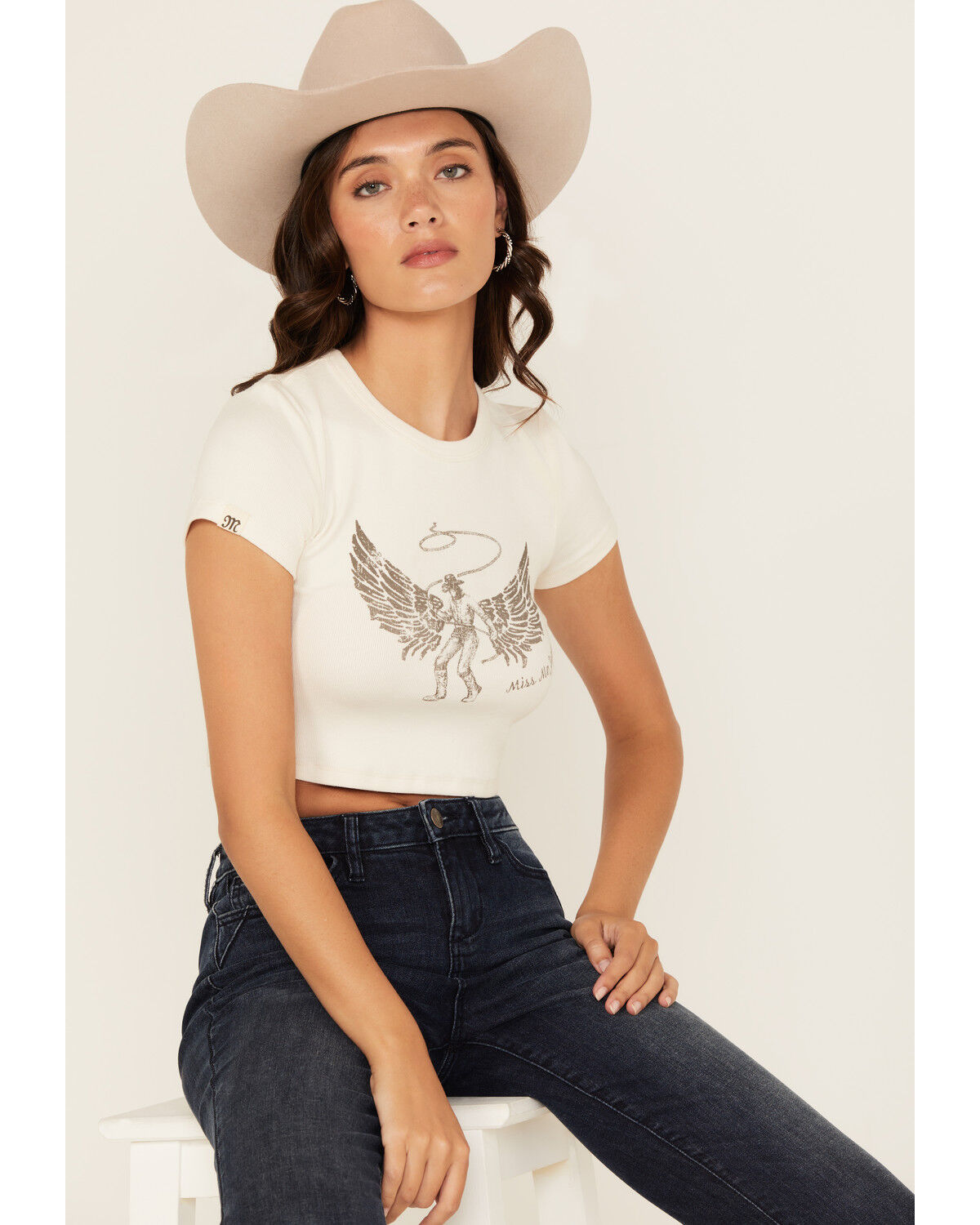Miss Me Women's Angel Short Sleeve Cropped Graphic Tee