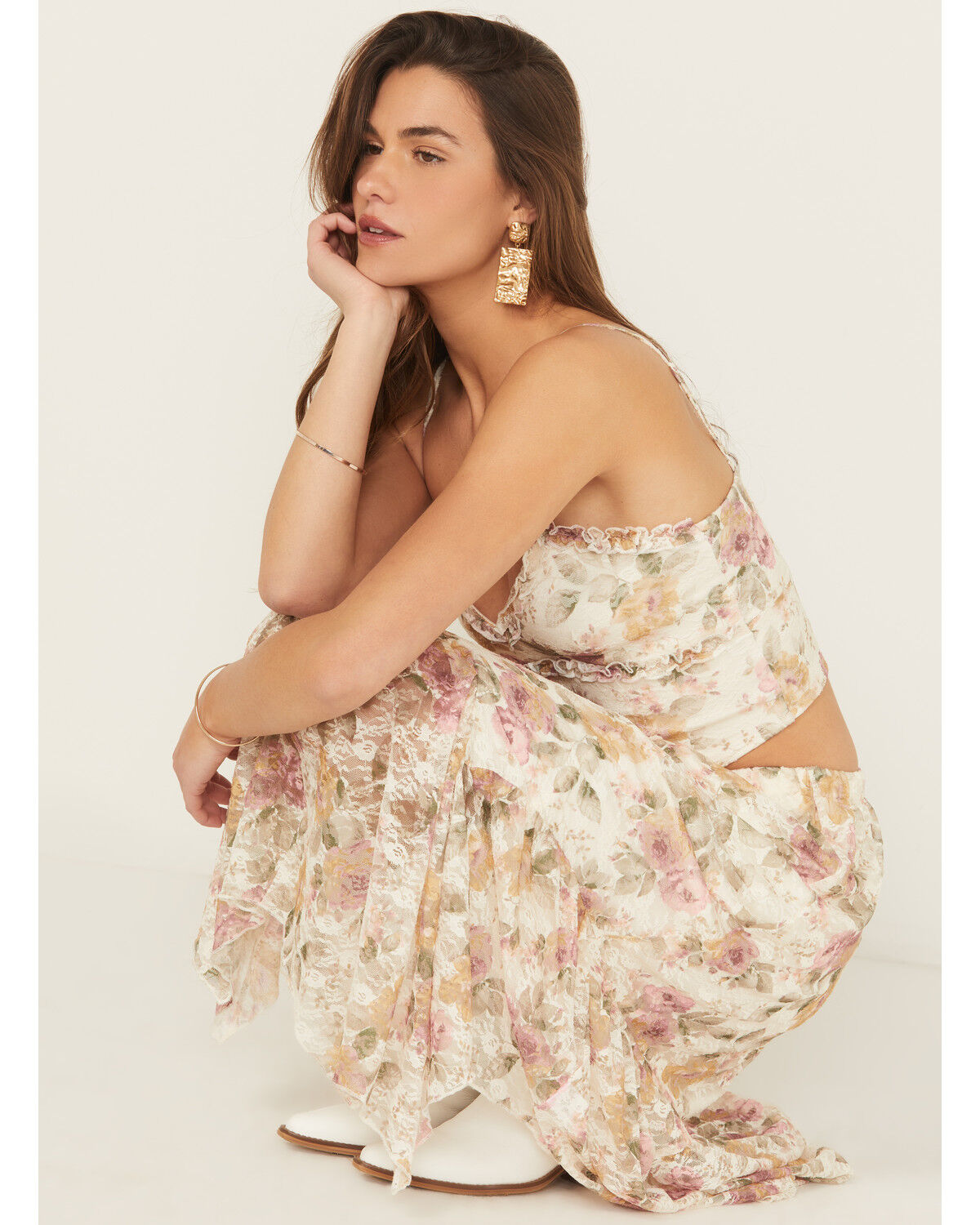 Idyllwind Women's Chase Floral Print Lace Trim Cami Tank