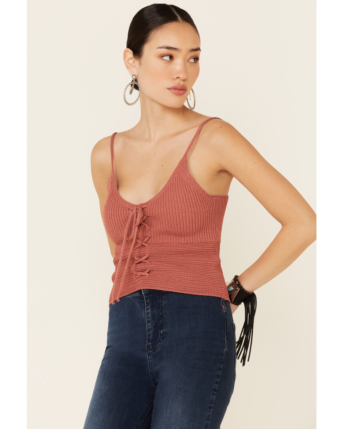 Mystree Women's Sweater-Knit Lace-Up Cami