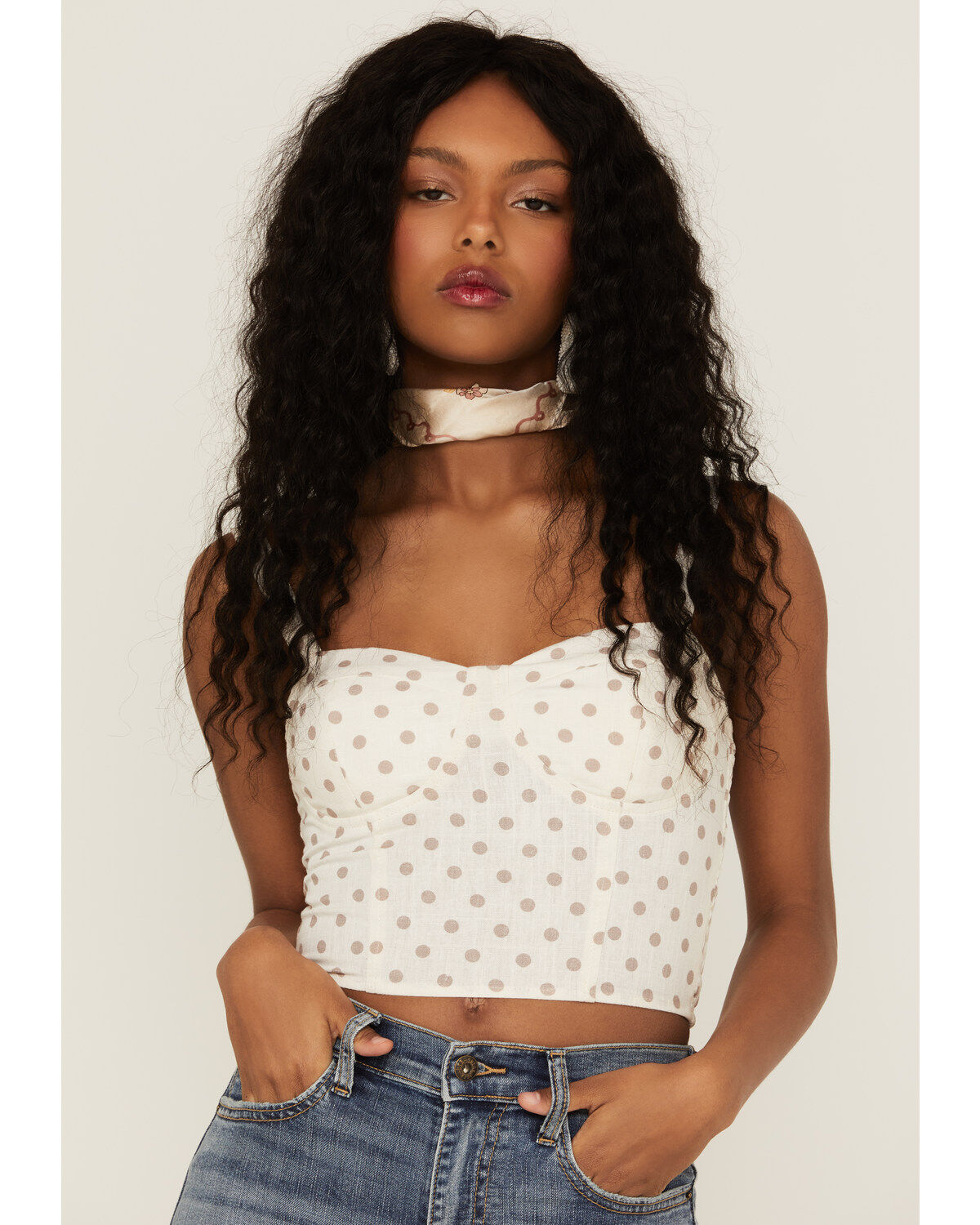 June & Hudson Women's Ivory Polka Dot Crop Bustier Top
