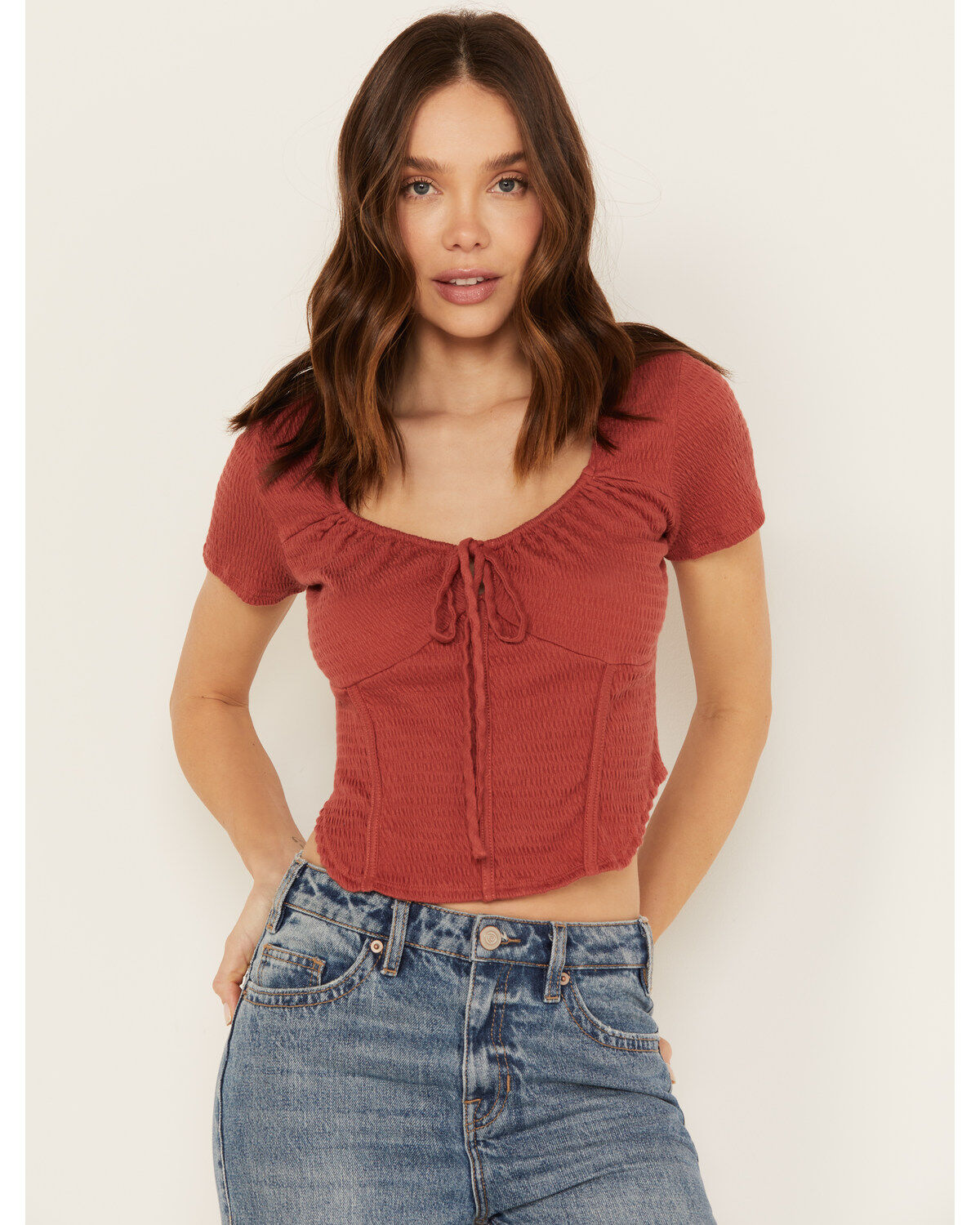 Wild Moss Women's Textured Corset Knit Top