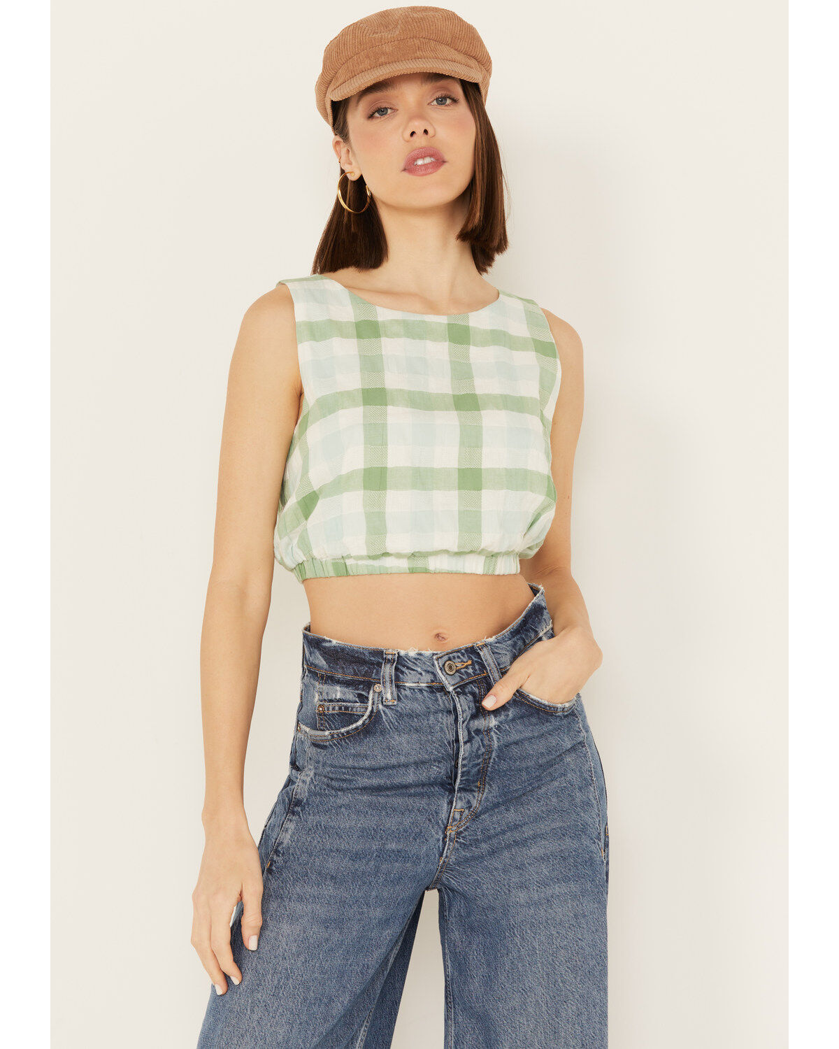 By Together Women's Gingham Print Cropped Sleeveless Top