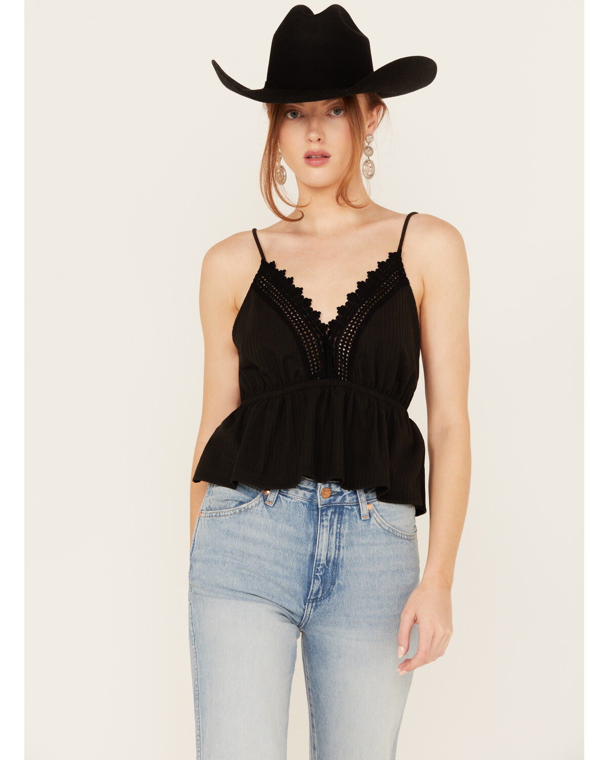 Wild Moss Women's Lace Trim Sleeveless Top