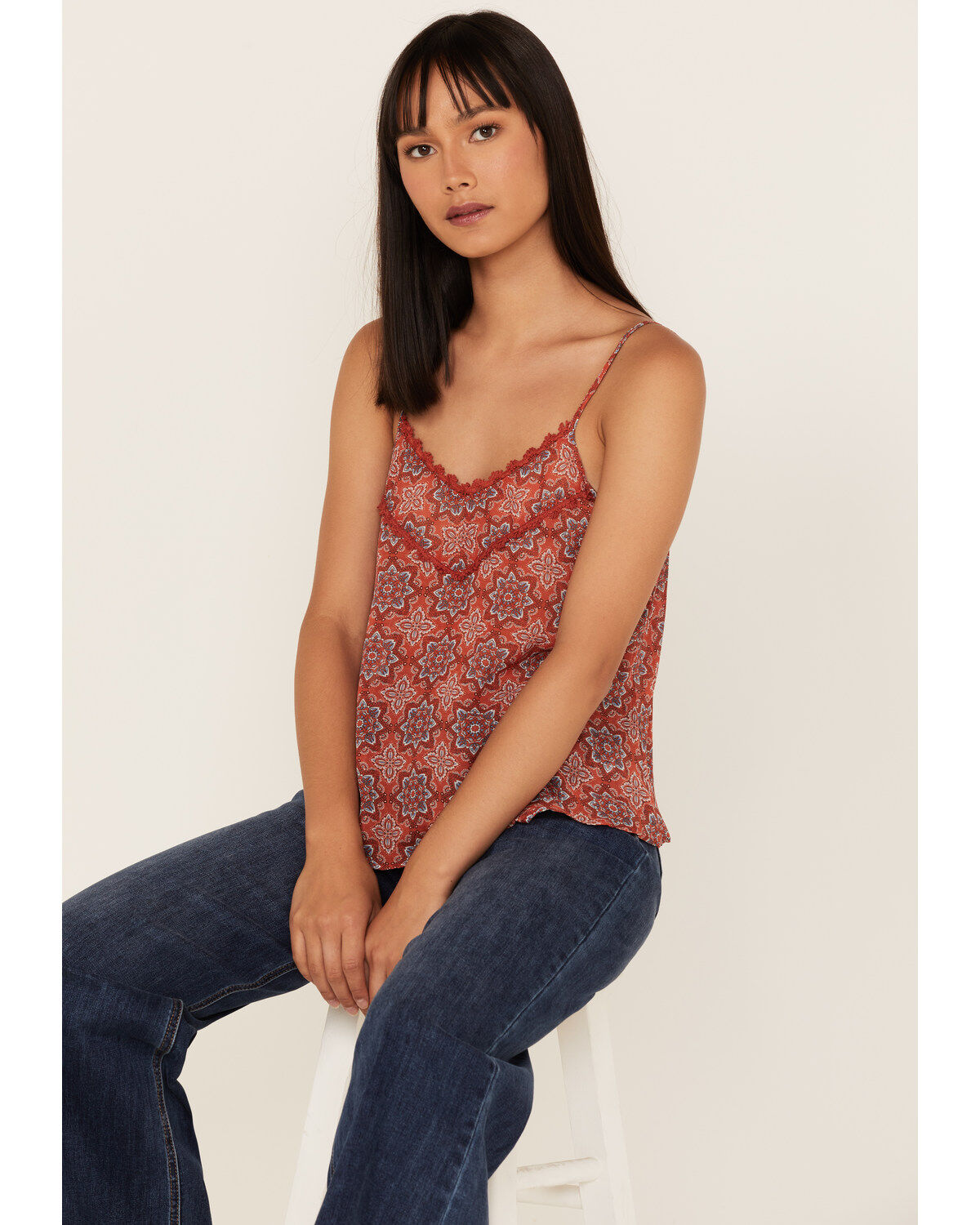 Wild Moss Women's Medallion Print Crochet Trim Cami