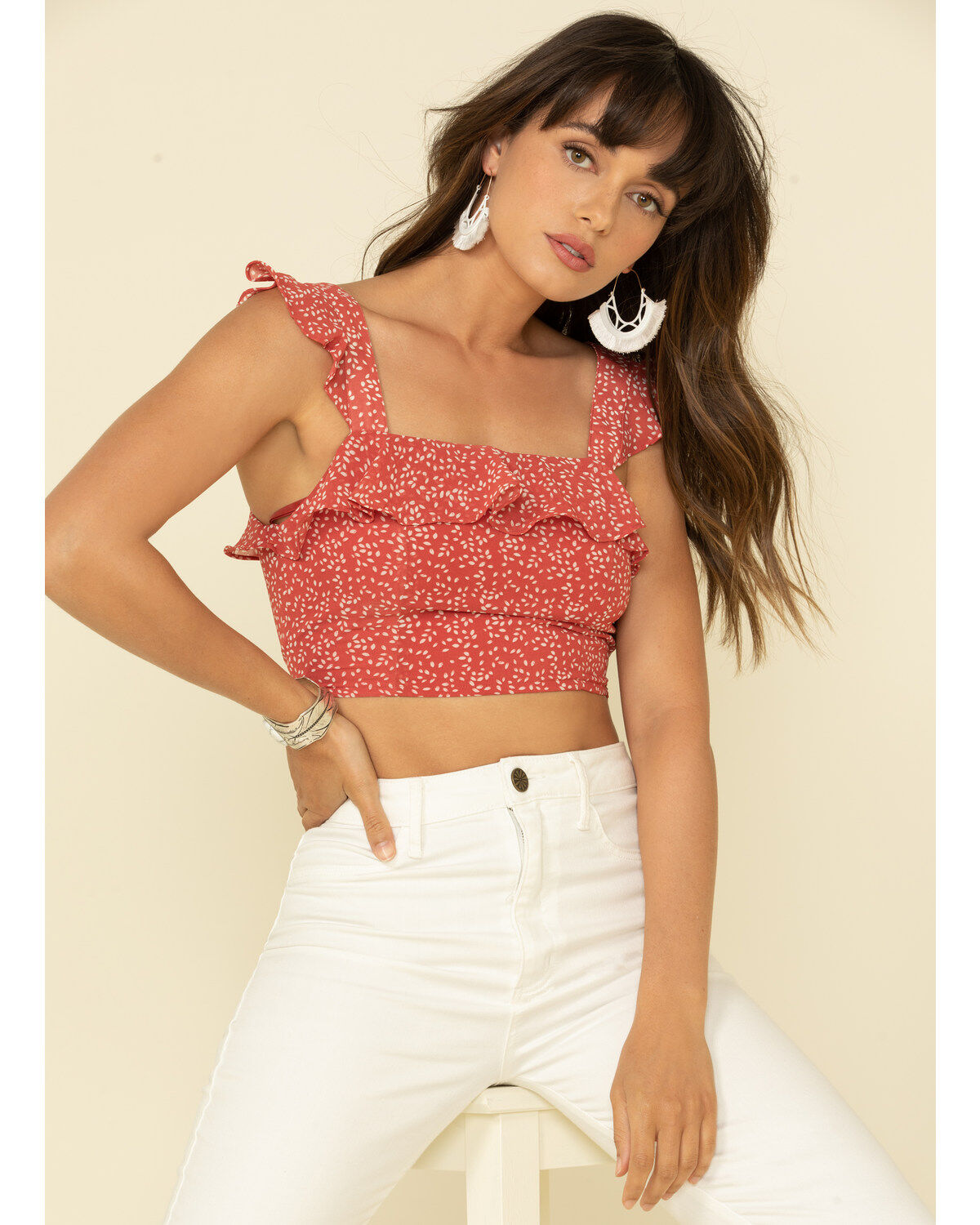 Very J Women's Ditsy Print Flutter Crop Top