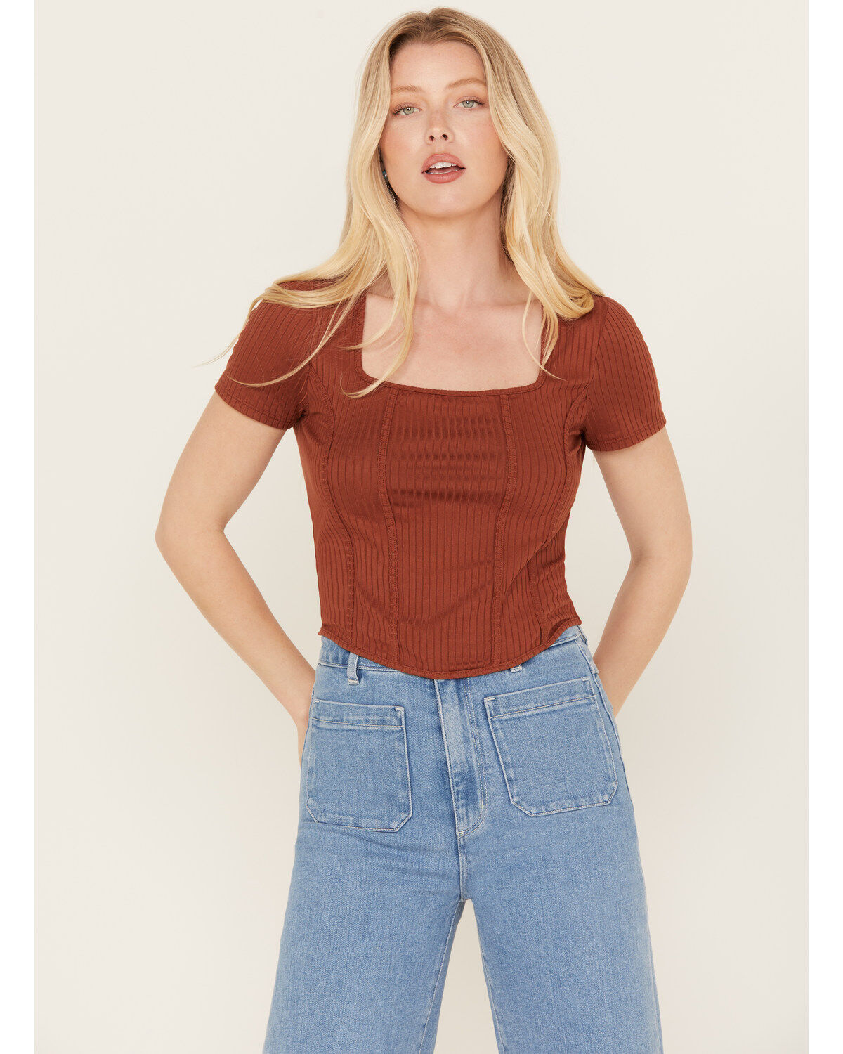 Moa Moa Women's Ribbed Corset Style Short Sleeve Top