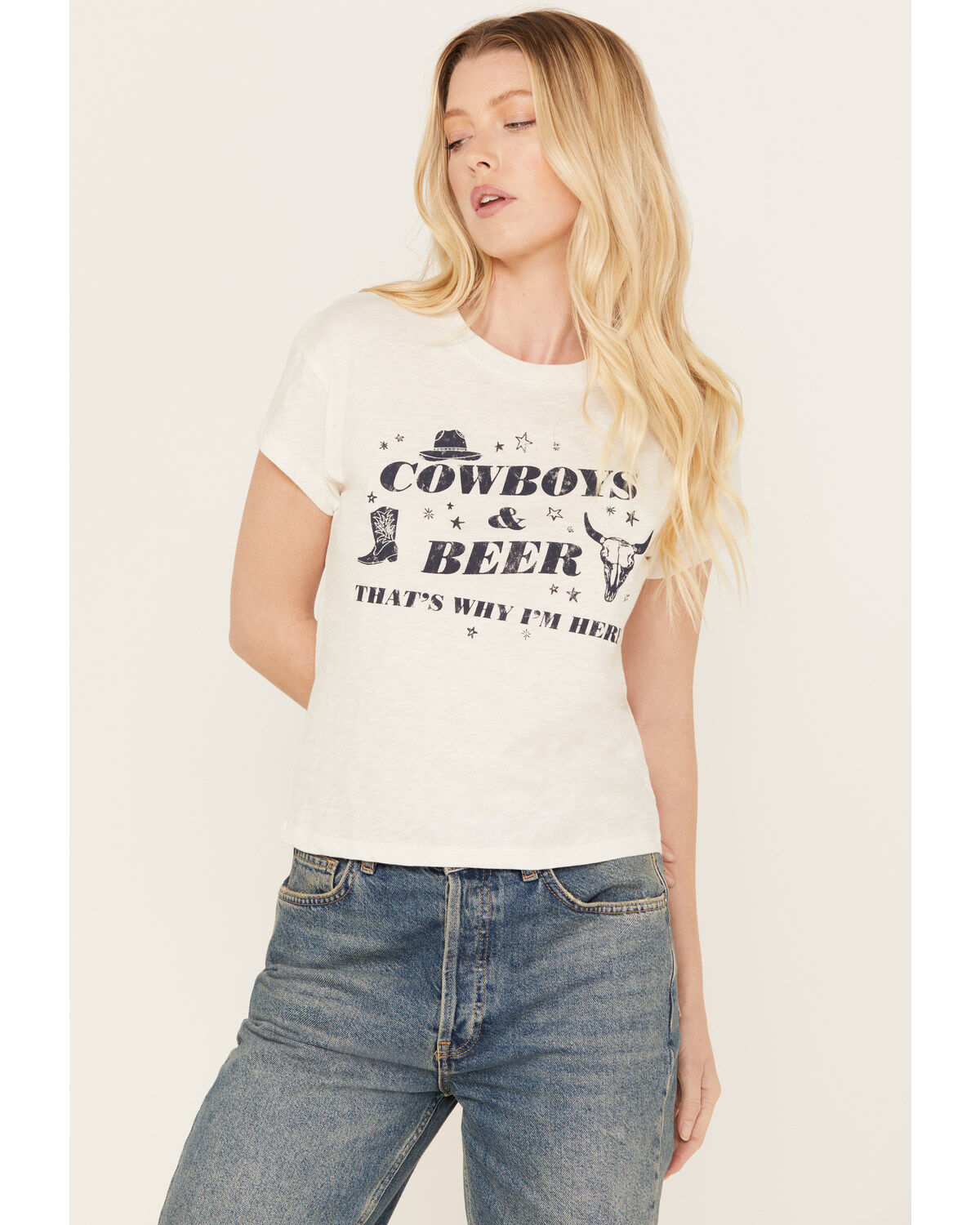 White Crow Women's Cowboys and Beer Short Sleeve Graphic Tee