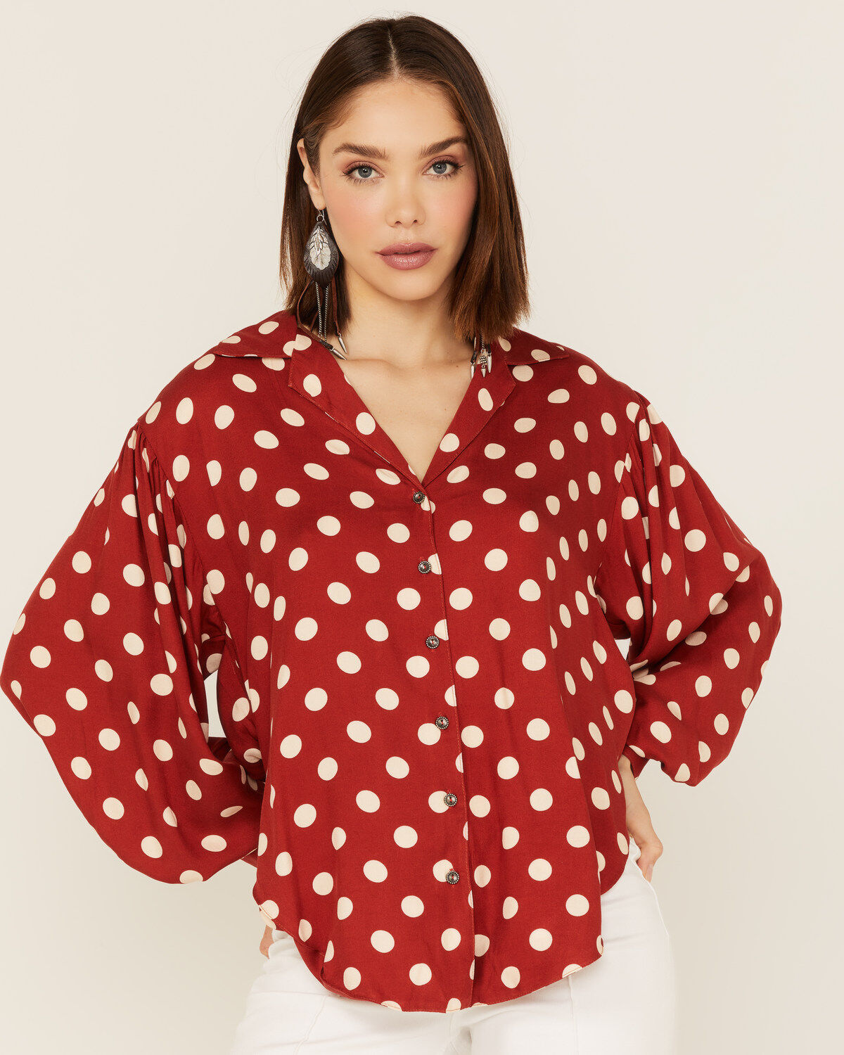 Shyanne Women's Printed Rayon Dobby Peasant Blouse