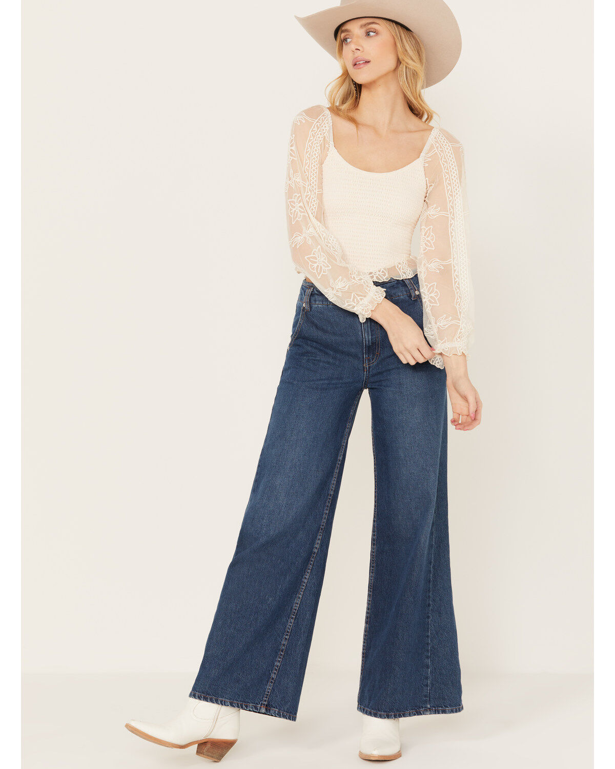 Cleo + Wolf Women's Knit Eyelet Smocked Crop Top