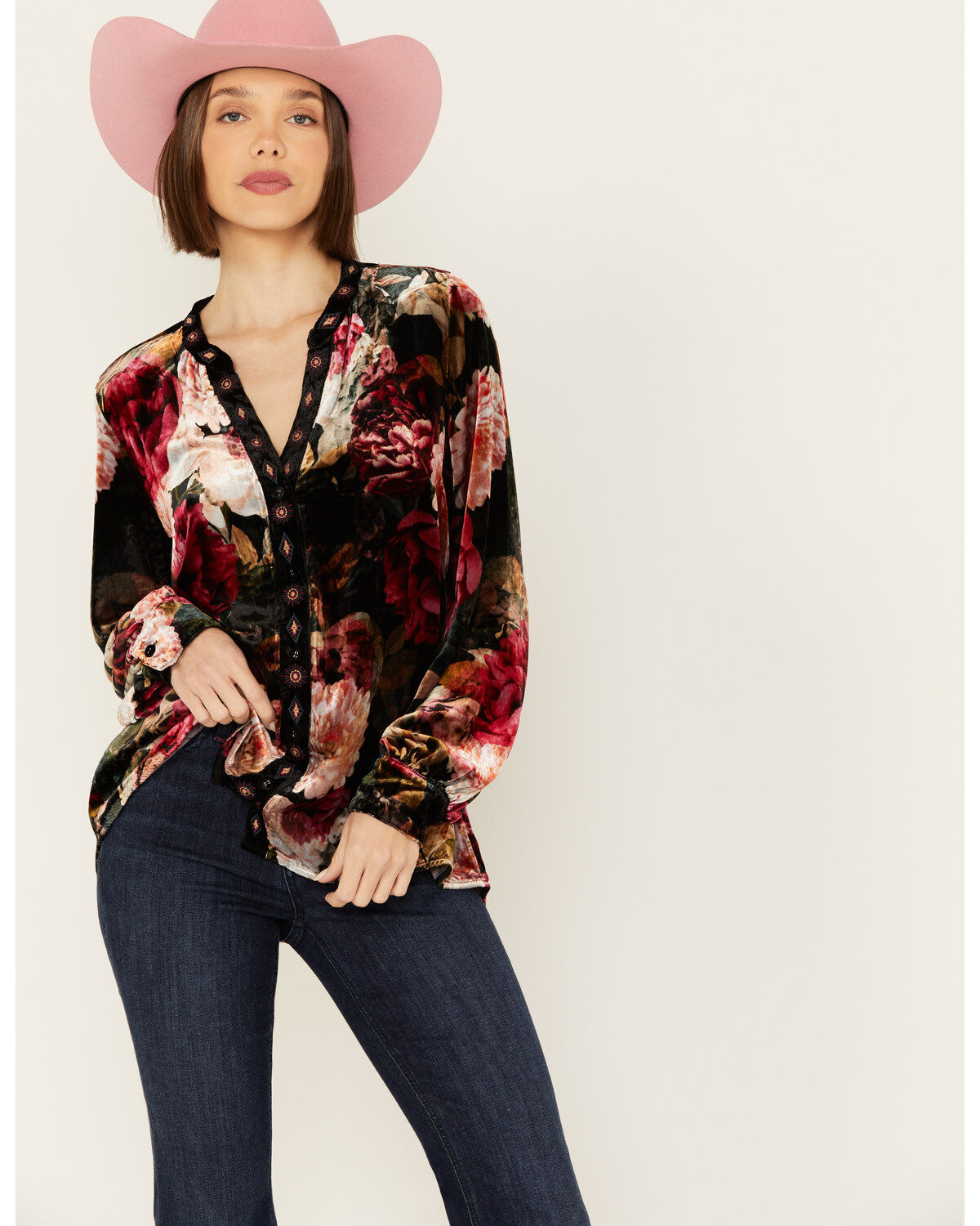 Johnny Was Women's Rose Floral Velvet Long Sleeve Shirt