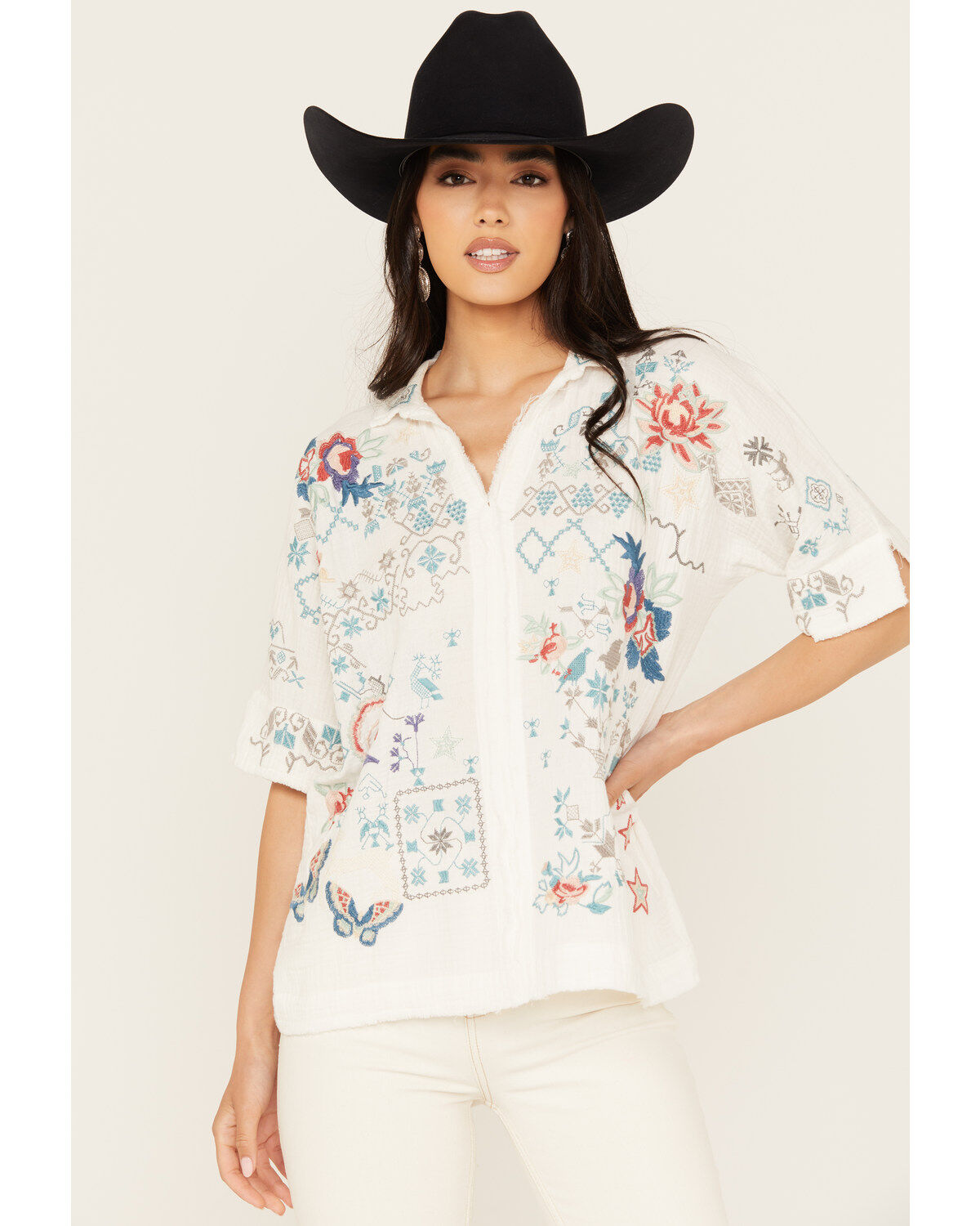 Johnny Was Women's Embroidered Short Sleeve Wodeleah Blouse