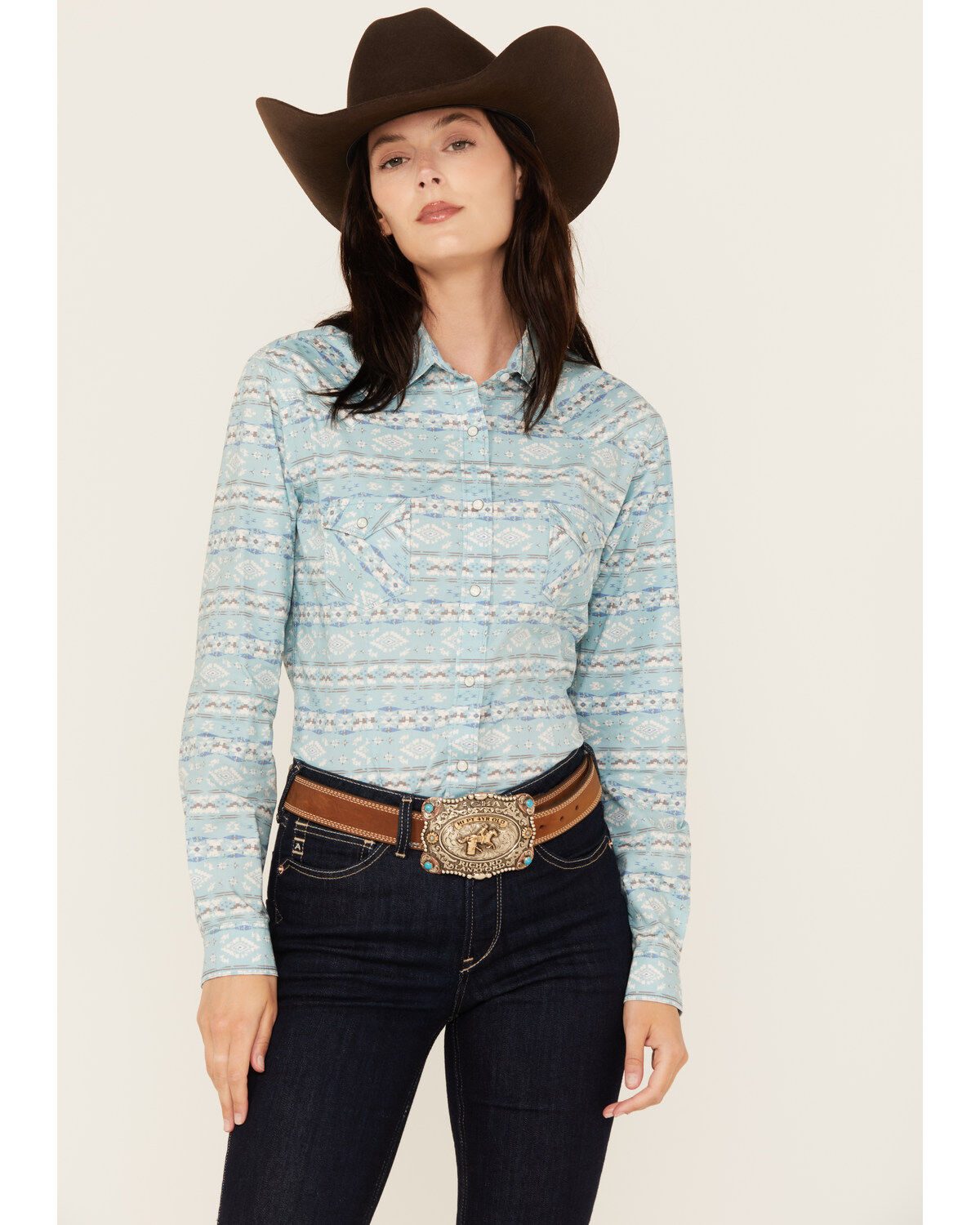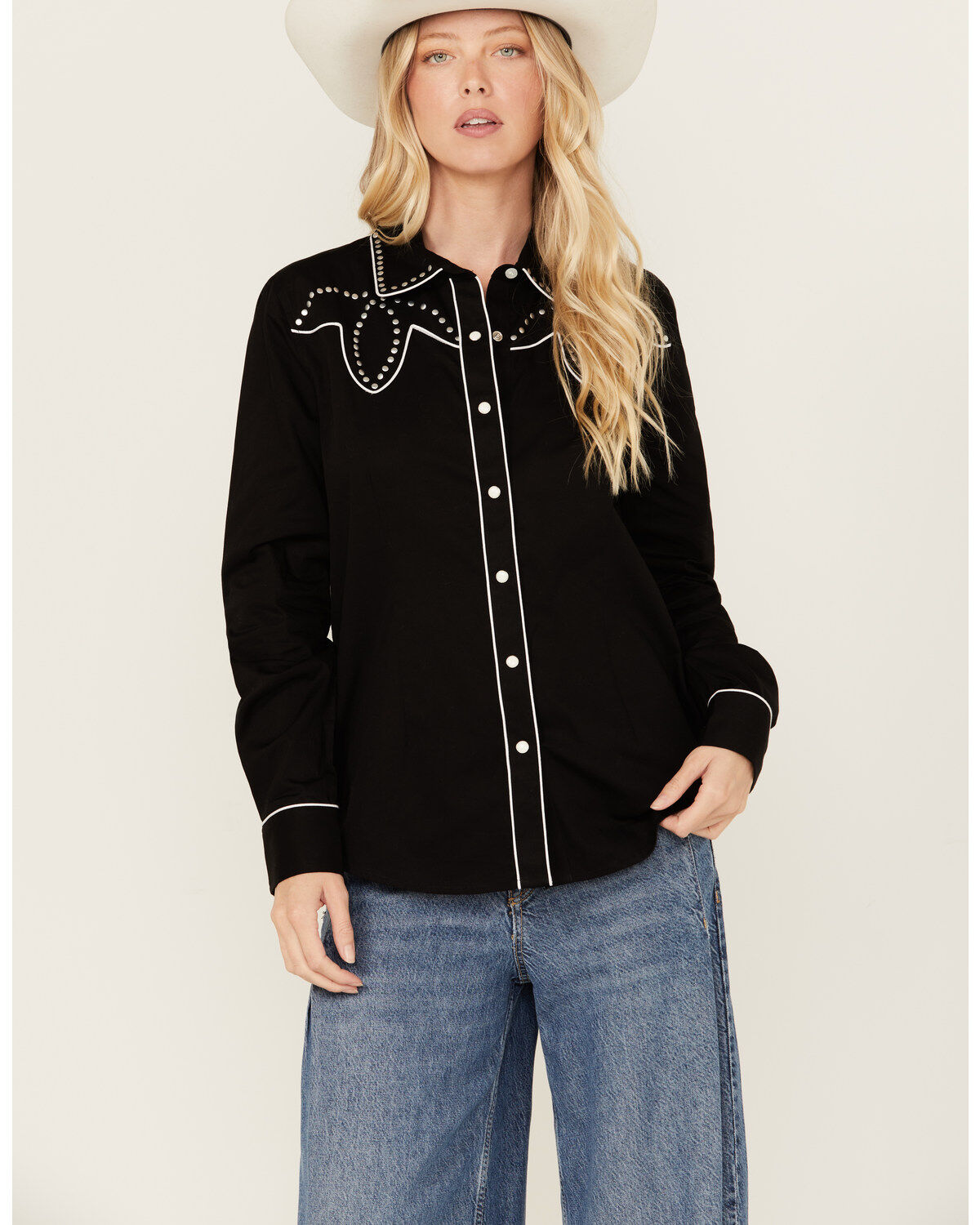 Panhandle Women's Retro Studded Long Sleeve Snap Western Shirt