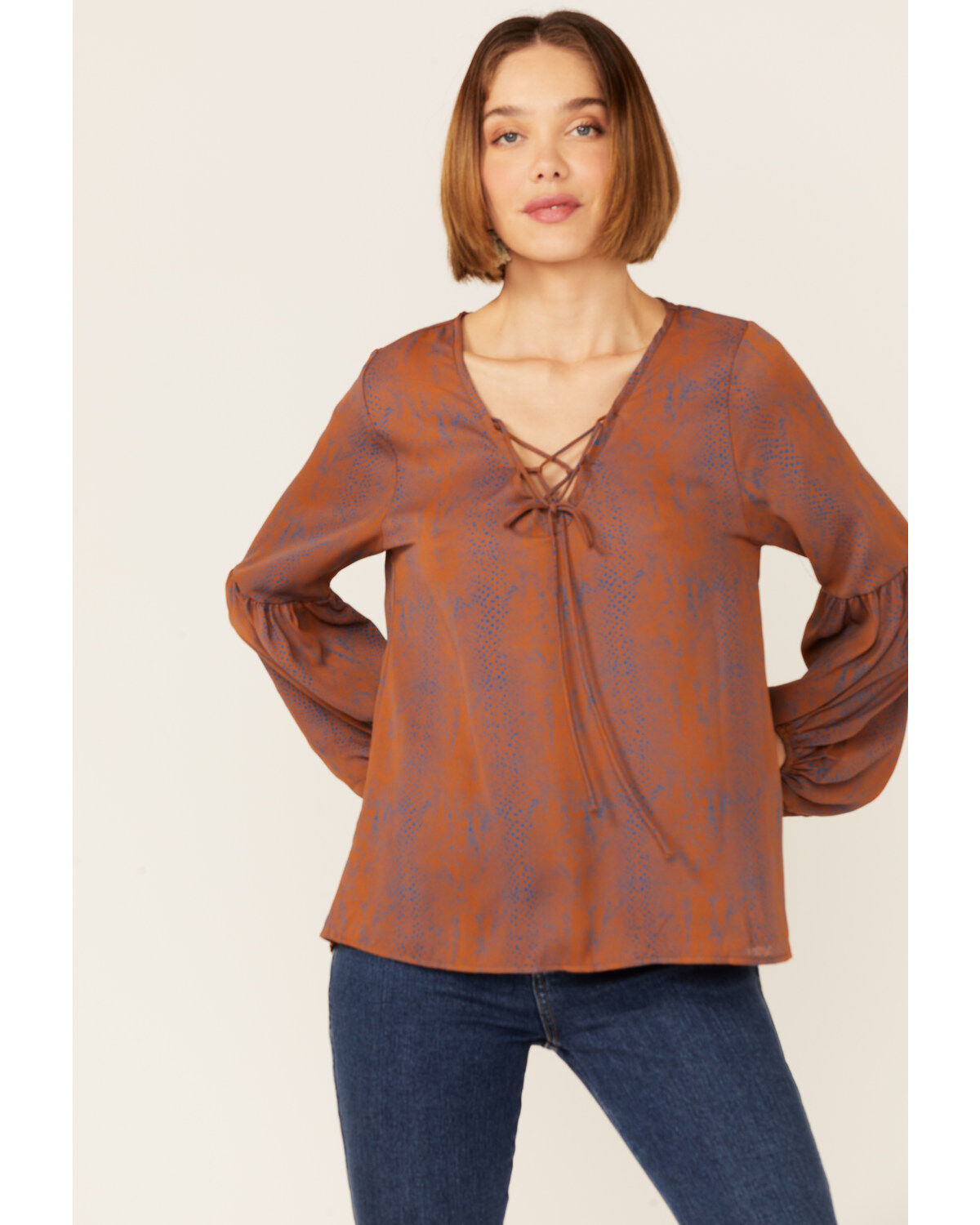 Saints & Hearts Rust Snake Print Tie Front Blouse