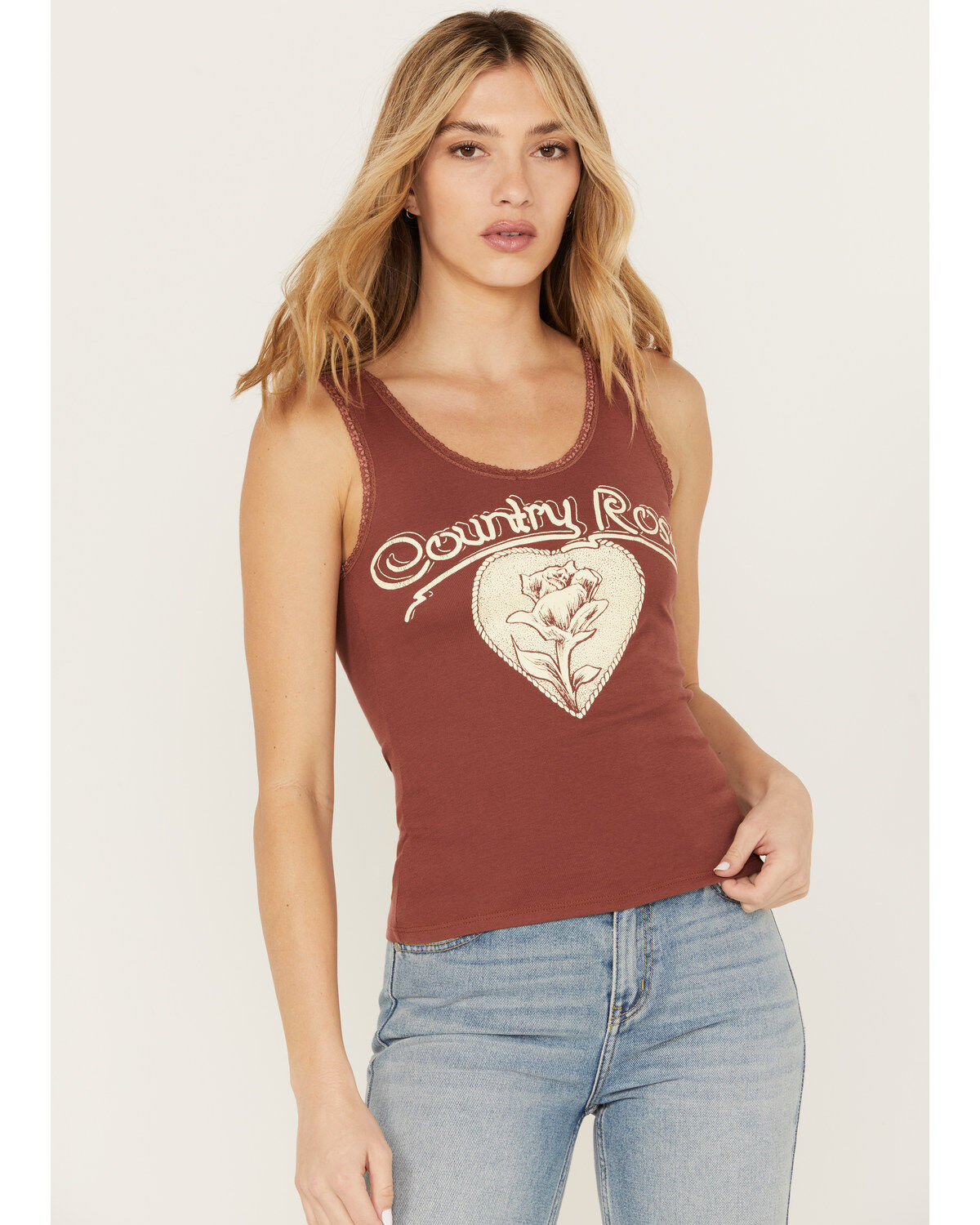 Bandit Women's Country Rose Lace Trim Graphic Tank