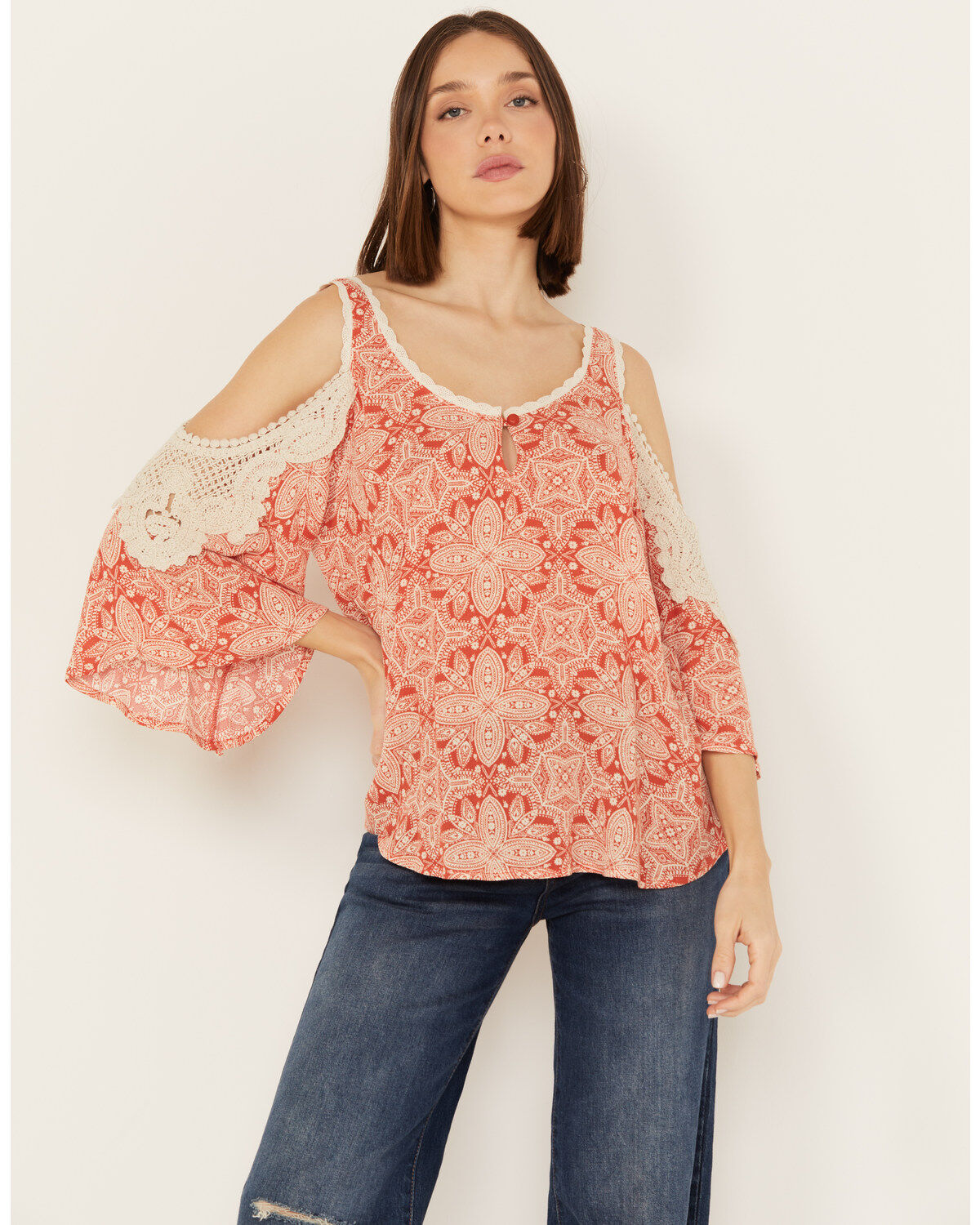 Miss Me Women's Paisley Embroidered Long Sleeve Blouse