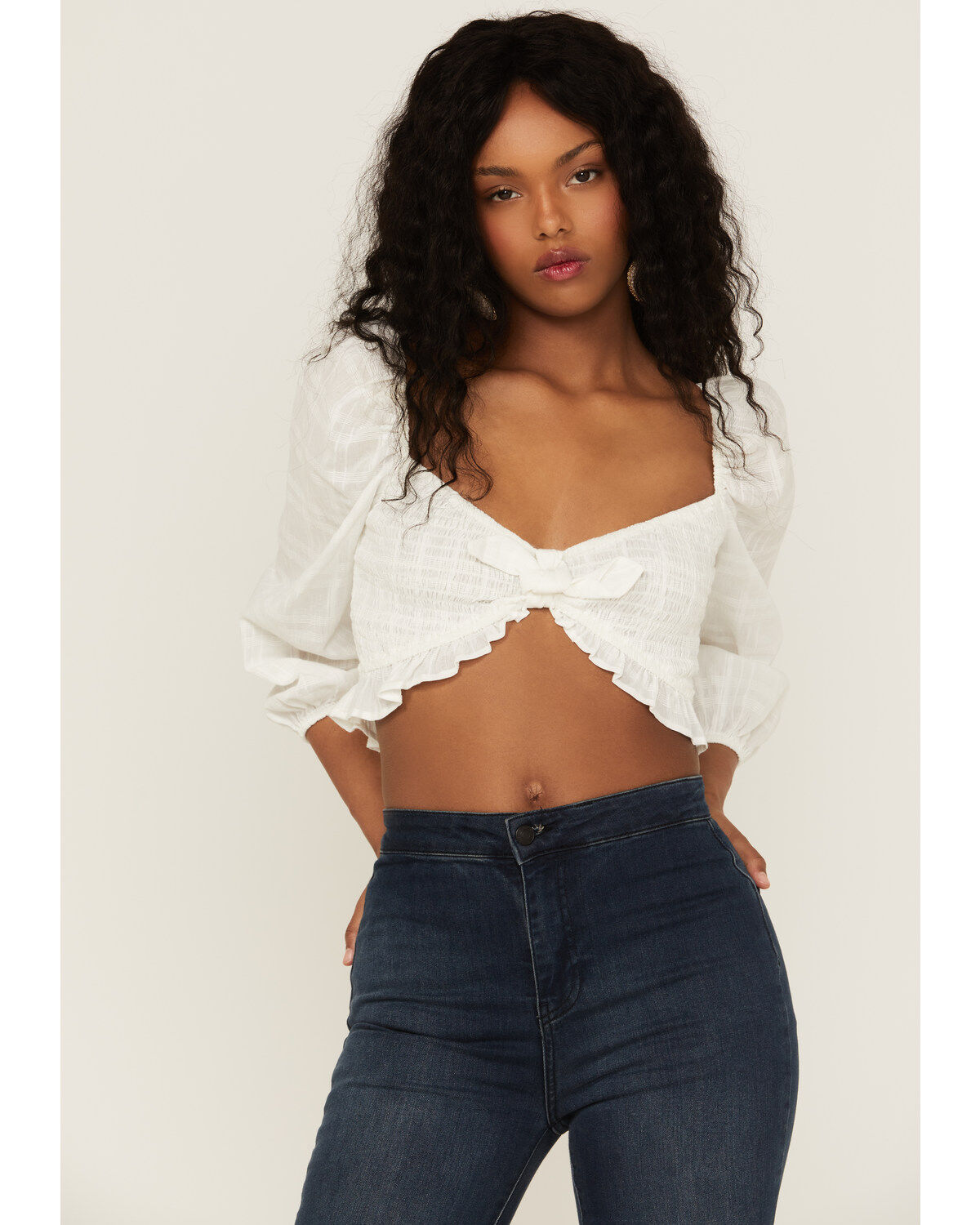 Lush Women's Long Sleeve Smocked Tie Front Blouse
