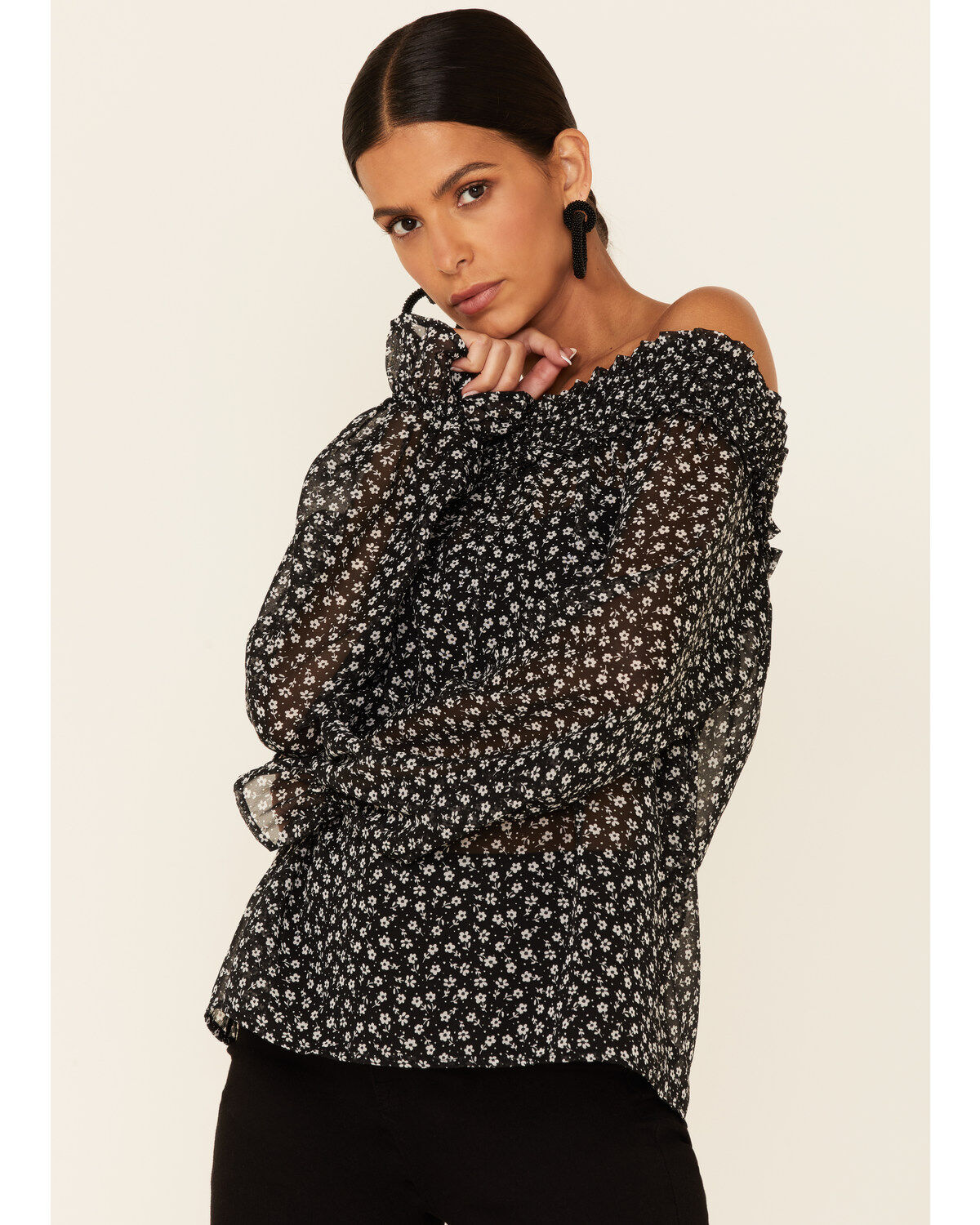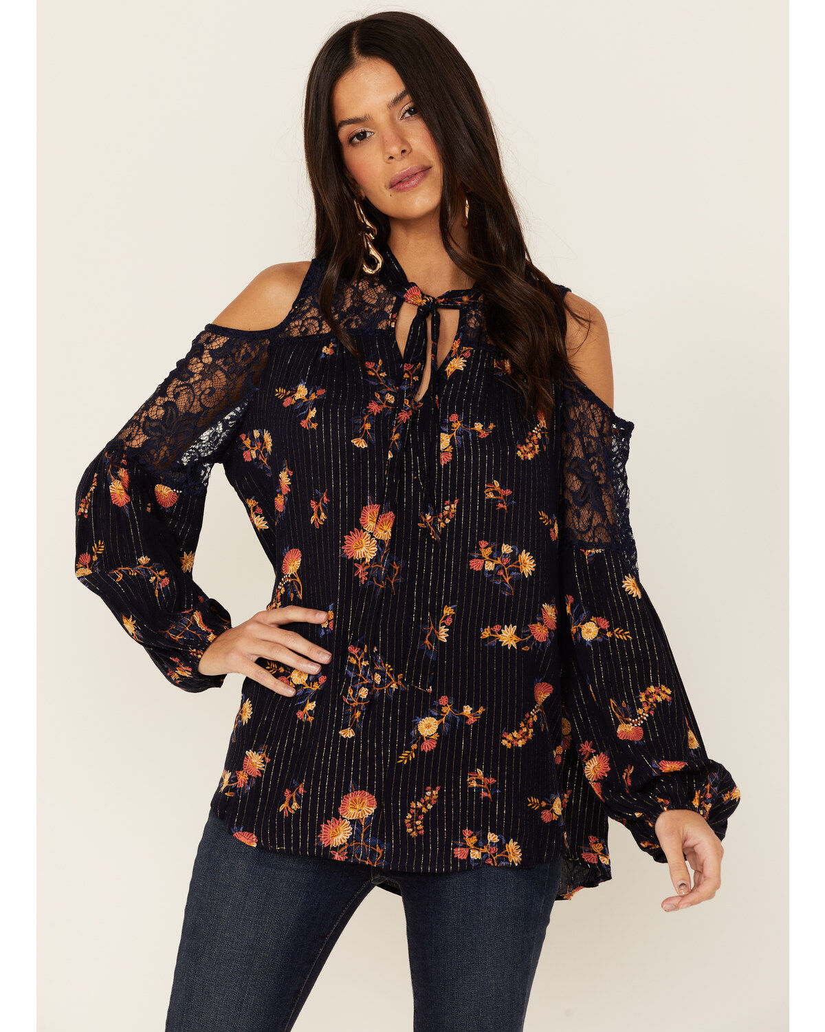 Miss Me Women's Cold Shoulder Long Sleeve Floral Top