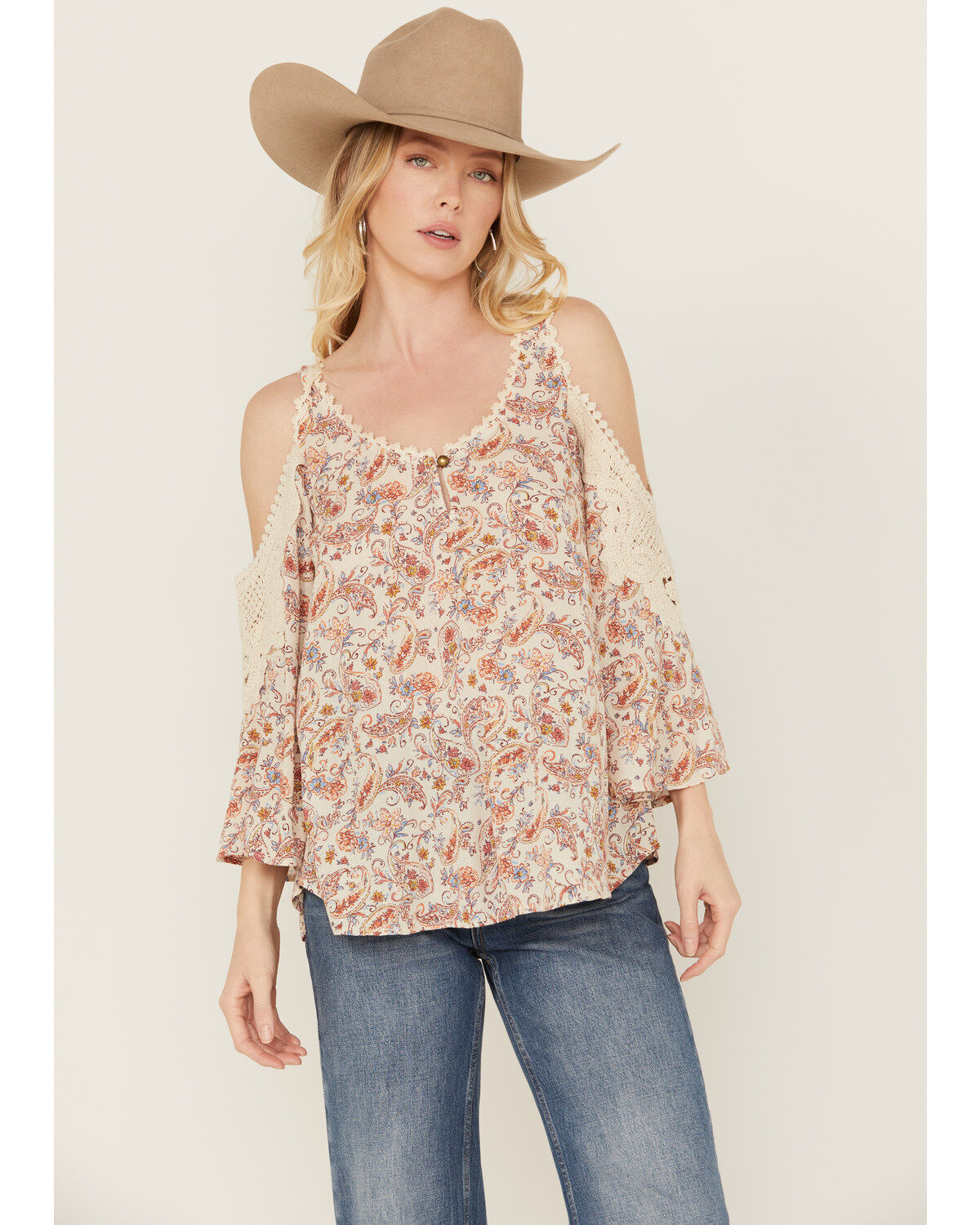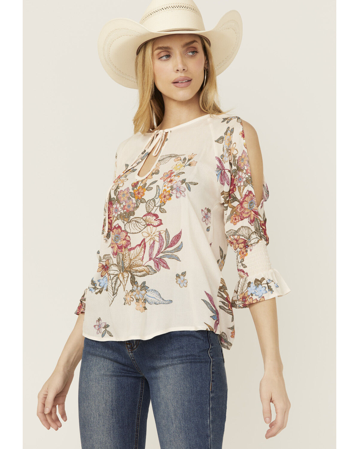 Wild Moss Women's Floral Print Cold Shoulder Top