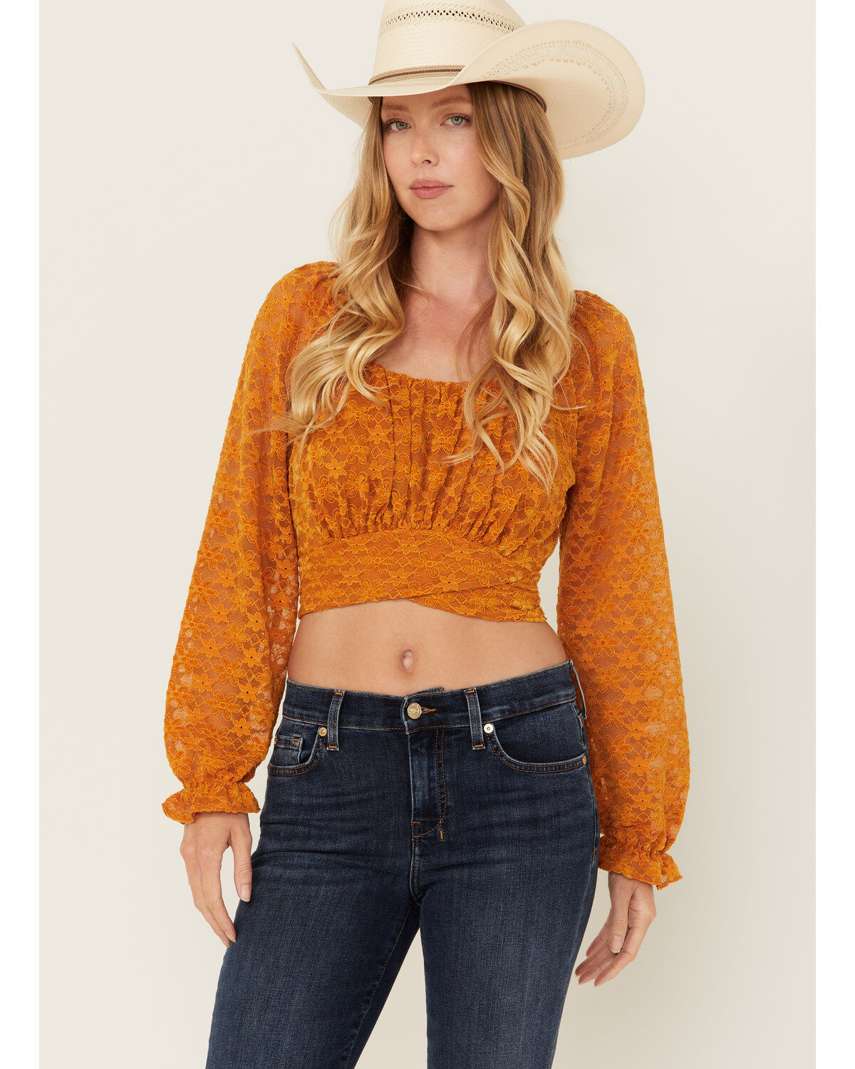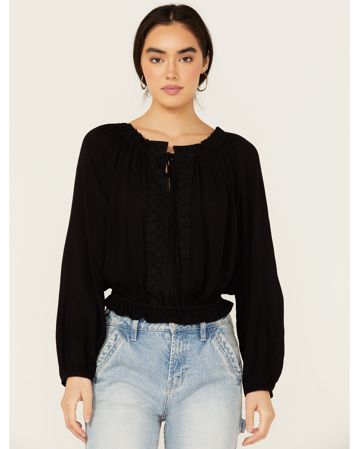 Trixxi Women's Solid Lace Long Bell Sleeve Shirt