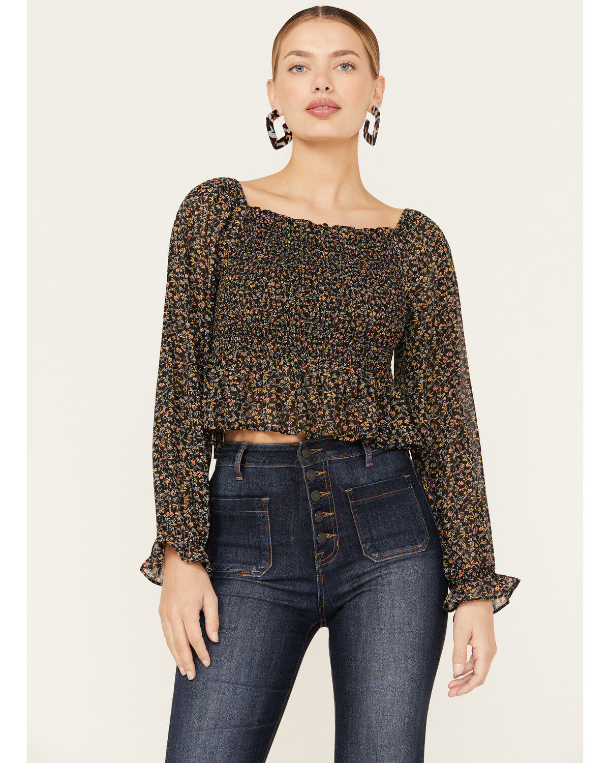 Ash & Violet Women's Solid Smocked Long Sleeve Blouse