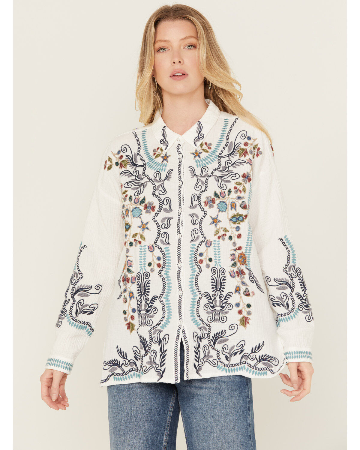 Johnny Was Women's Embroidered Long Sleeve Button-Down Shirt