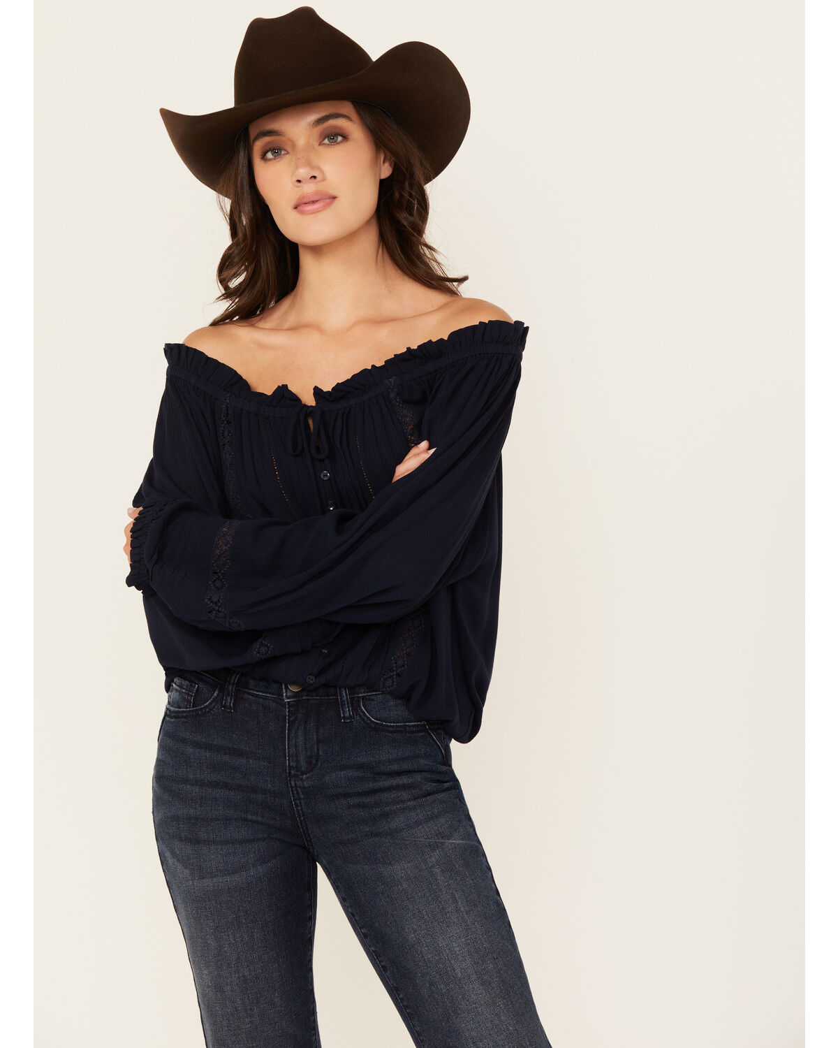 Wild Moss Women's Lace Detail Peasant Top