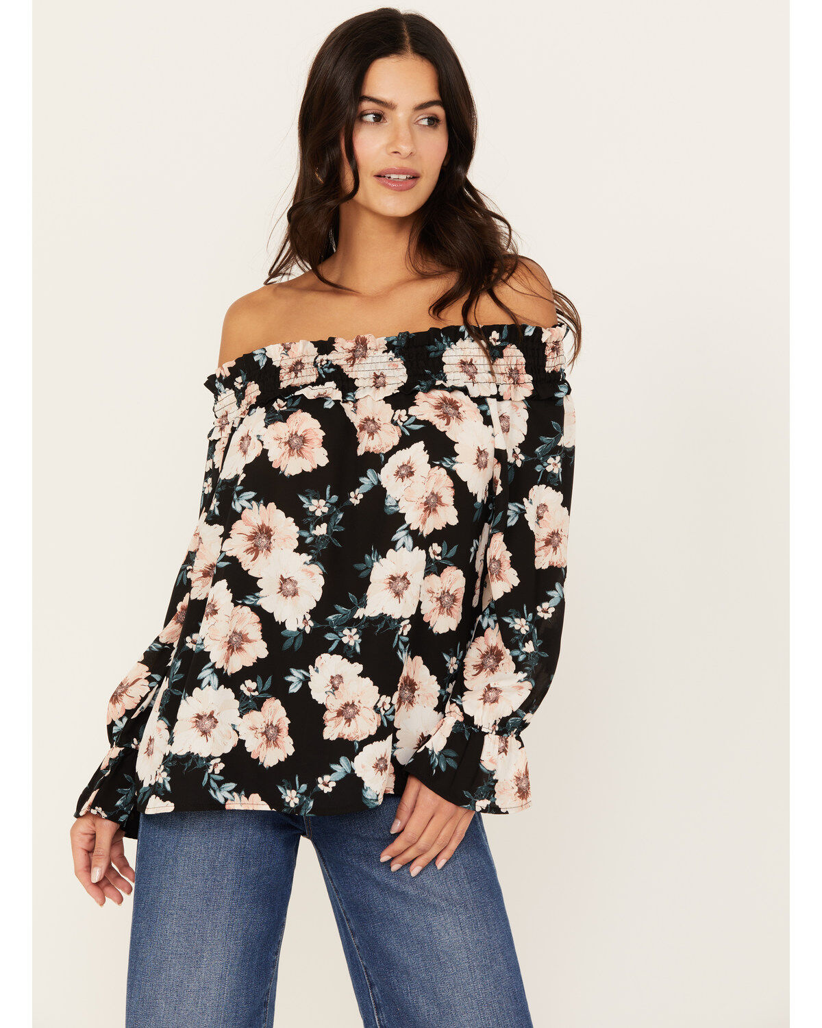 Wild Moss Women's Long Sleeve Off The Shoulder Floral Top