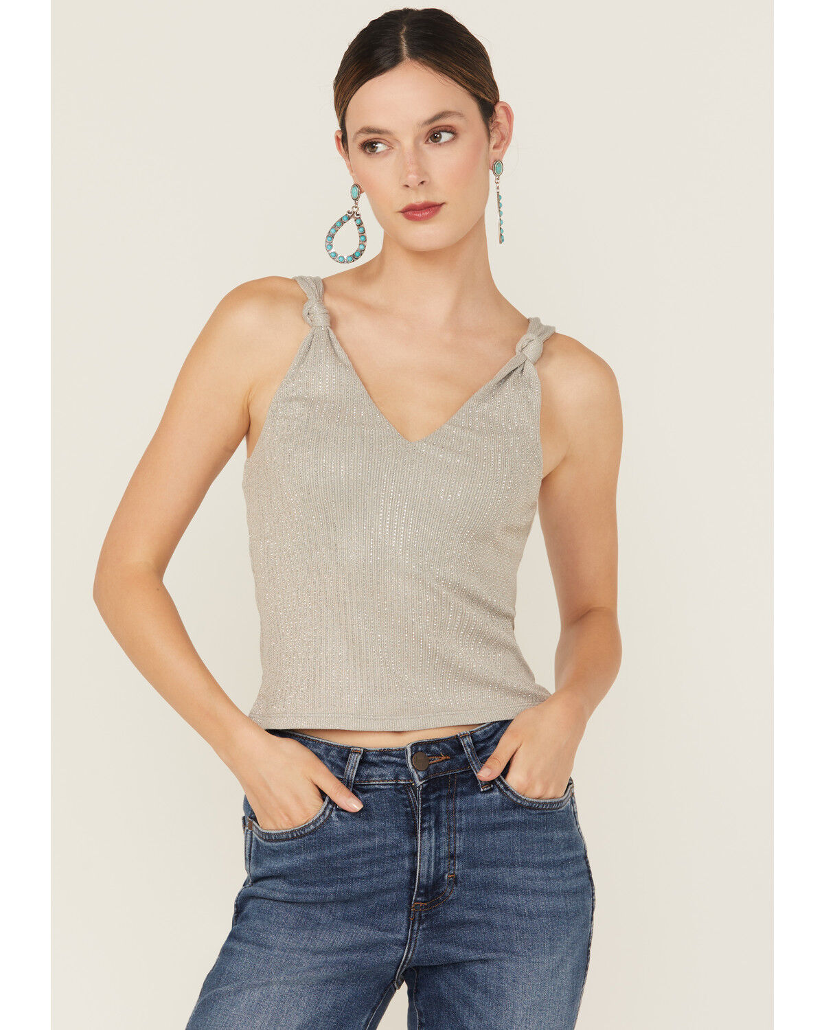 Miss Me Women's Rhinestone Knotted Sleeveless Tank Top