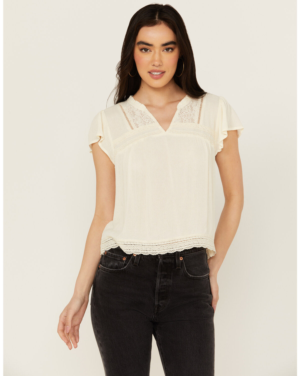 Jolt Women's Lace Trim Flutter Short Sleeve Top