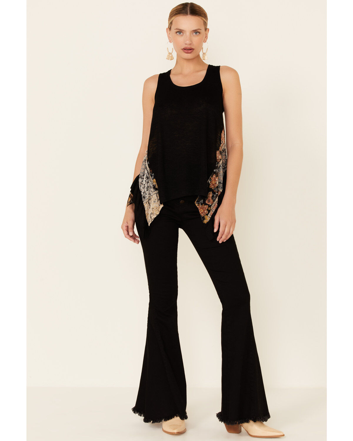Mystree Women's Contrast Floral Boho Back Tank Top