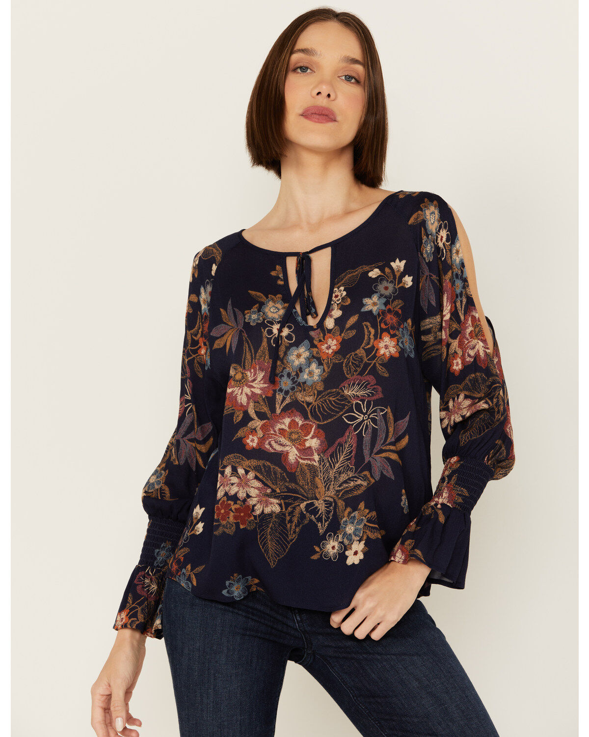 Wild Moss Women's Floral Printed Cold Shoulder Top