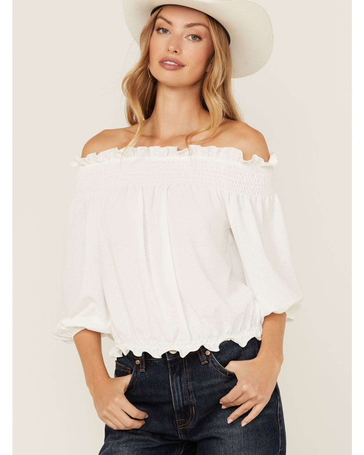 Wild Moss Women's Solid Smocked Off The Shoulder Top