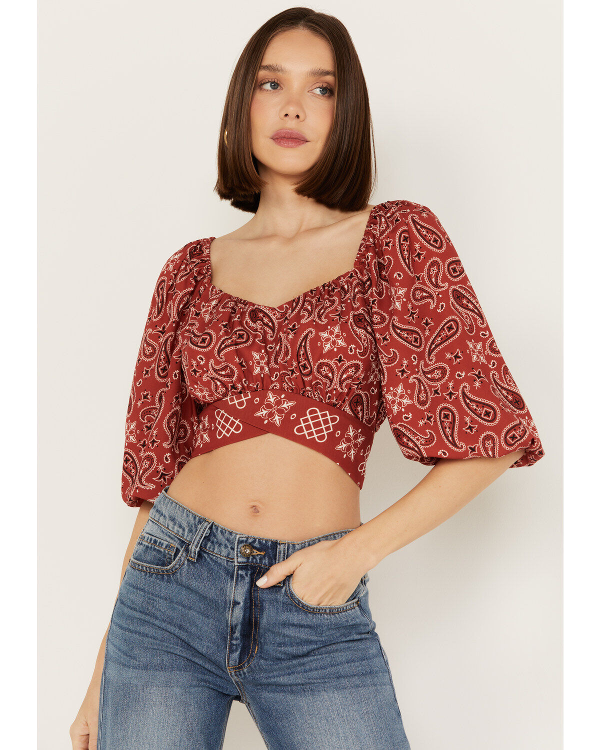 Beyond The Radar Women's Bandana Print Tie Back Top