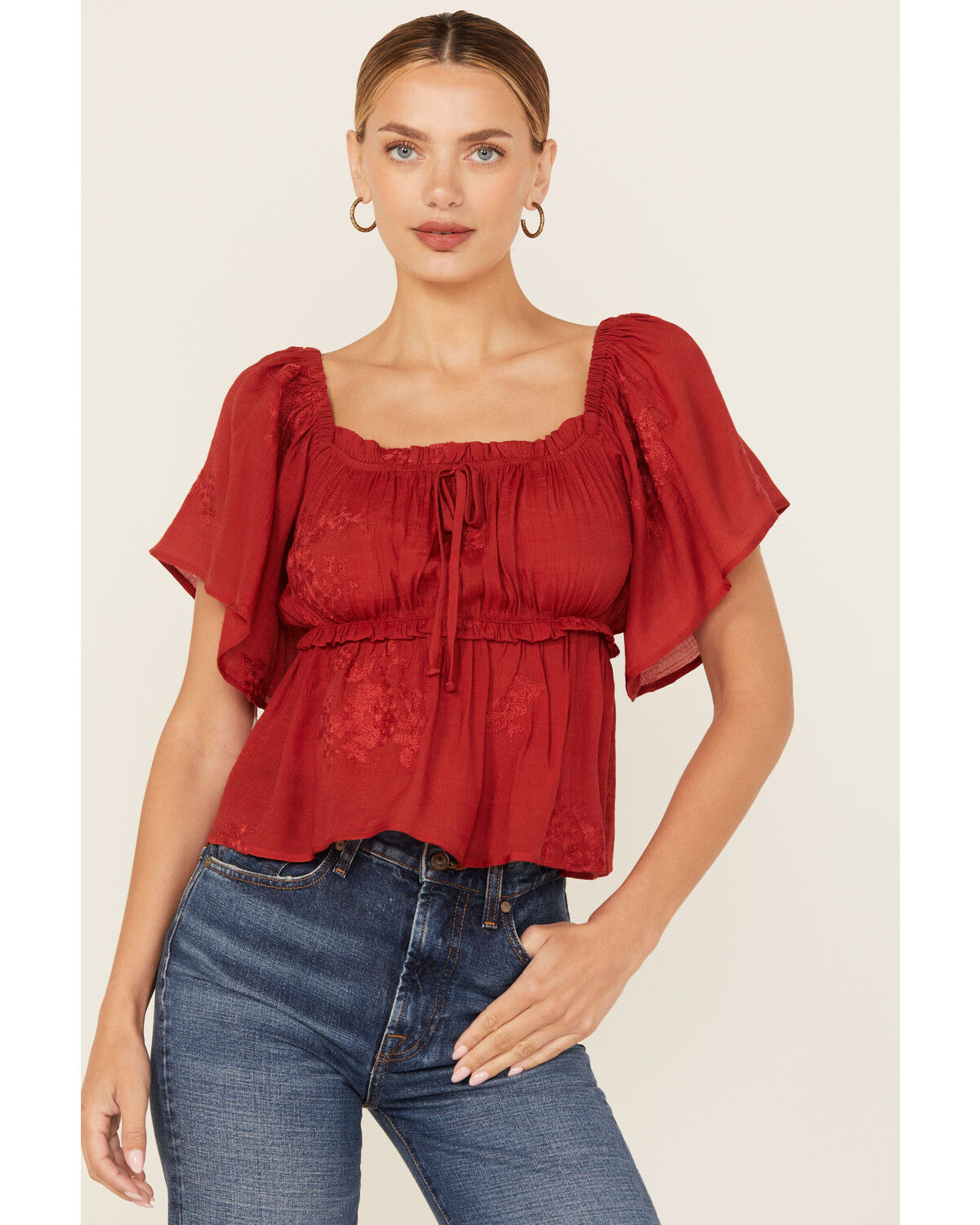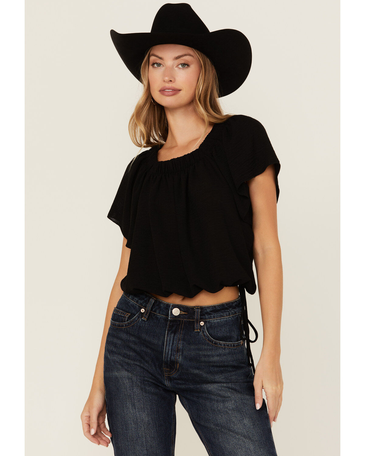 Wild Moss Women's Flutter Sleeve Peasant Top