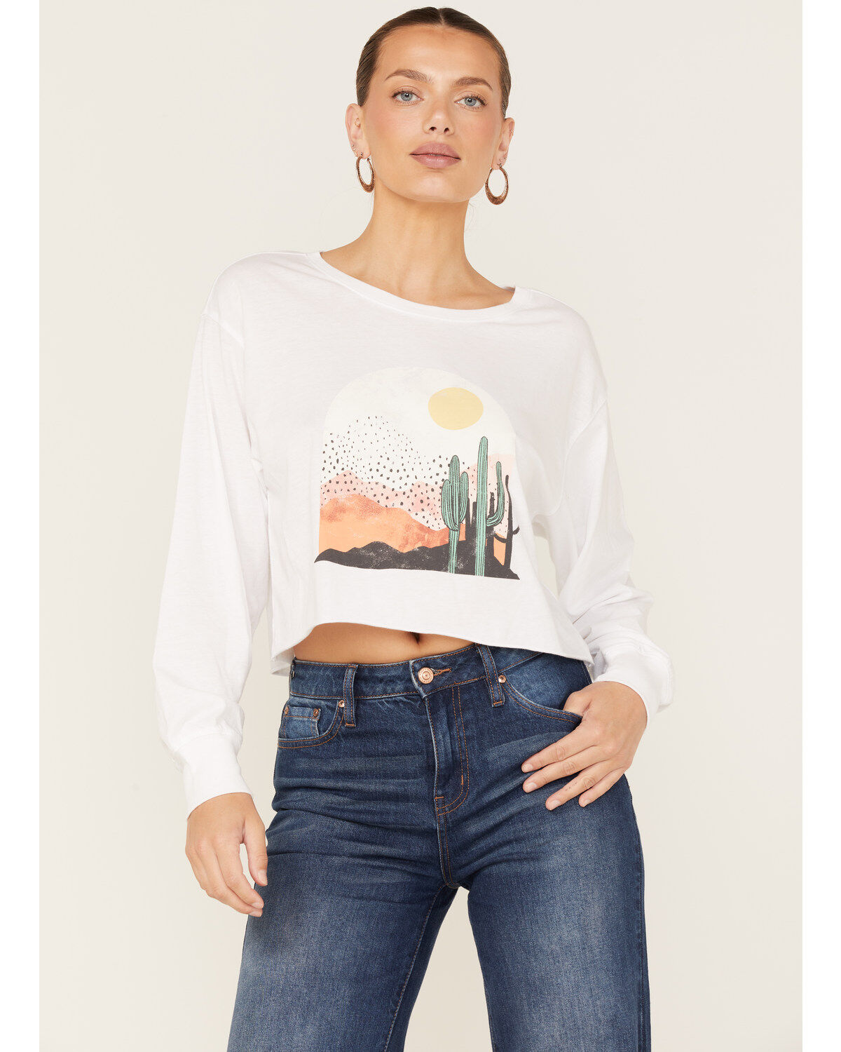 Rock & Roll Denim Women's Metal Ring Long Sleeve Cropped Top