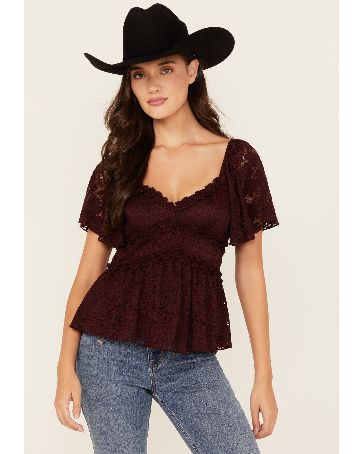 Originality Women's Ruffle Lace Short Sleeve Top