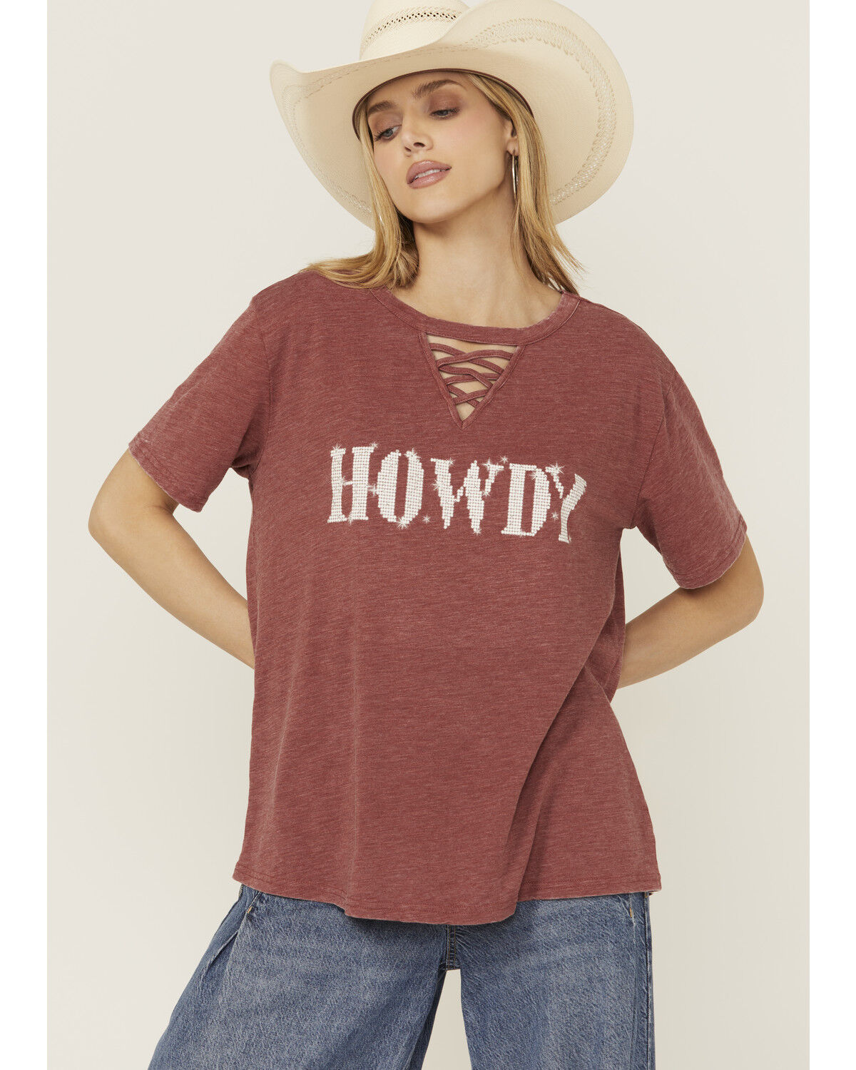 Blended Women's Howdy Rhinestone Short Sleeve Graphic Tee