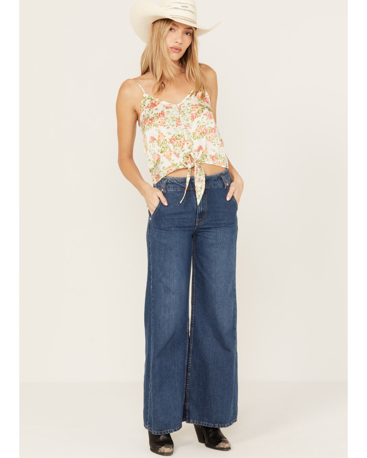 En Creme Women's Floral Print Tie Front Sleeveless Top