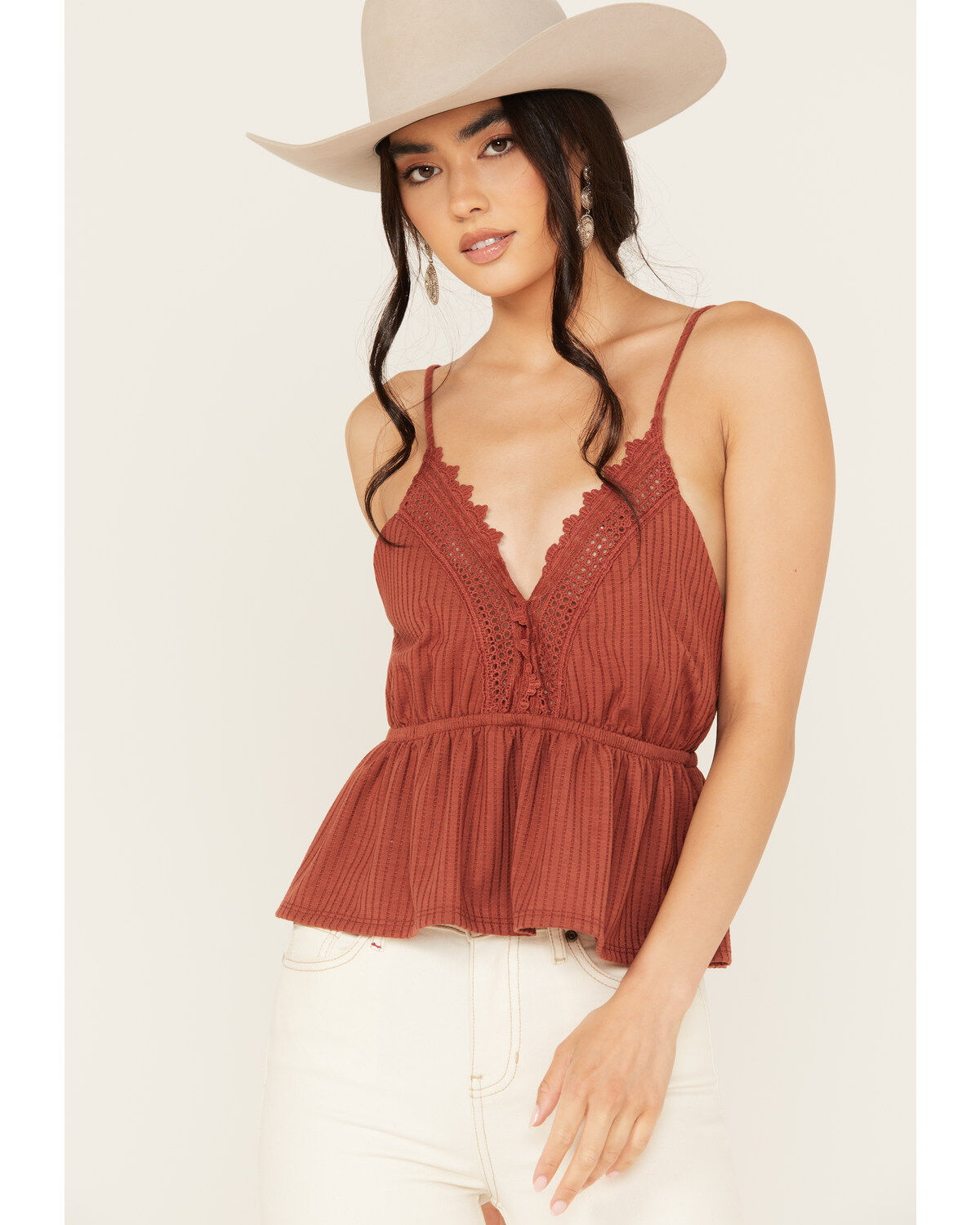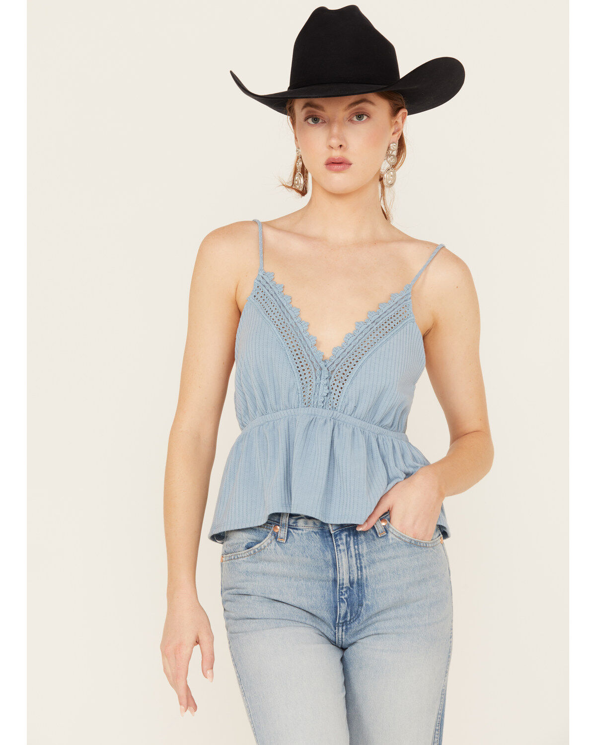 Wild Moss Women's Lace Trim Sleeveless Top
