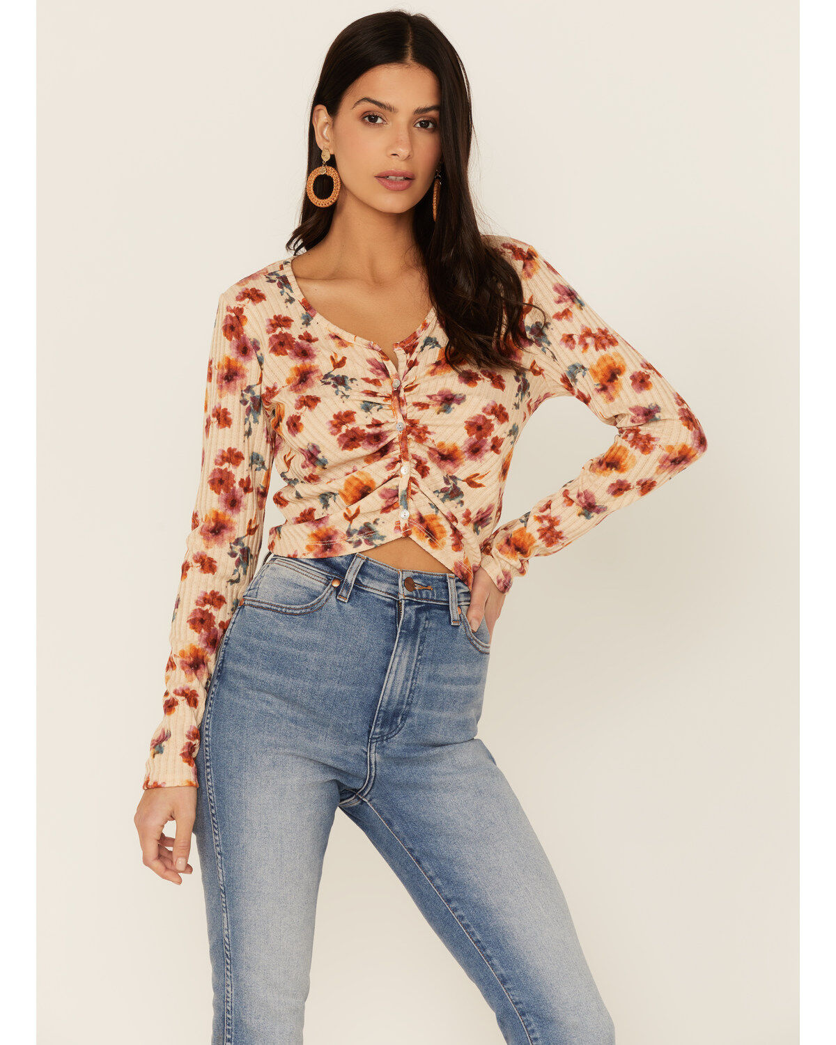 Roper Women's Floral Striped Long Sleeve Snap Western Shirt