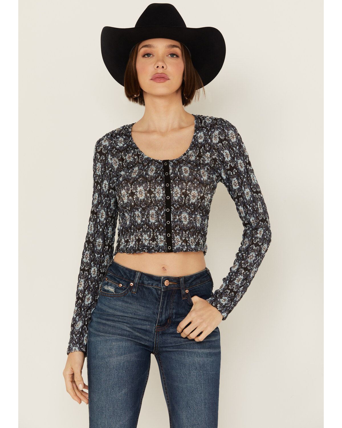 Beyond The Radar Women's Floral Mesh Long Sleeve Top