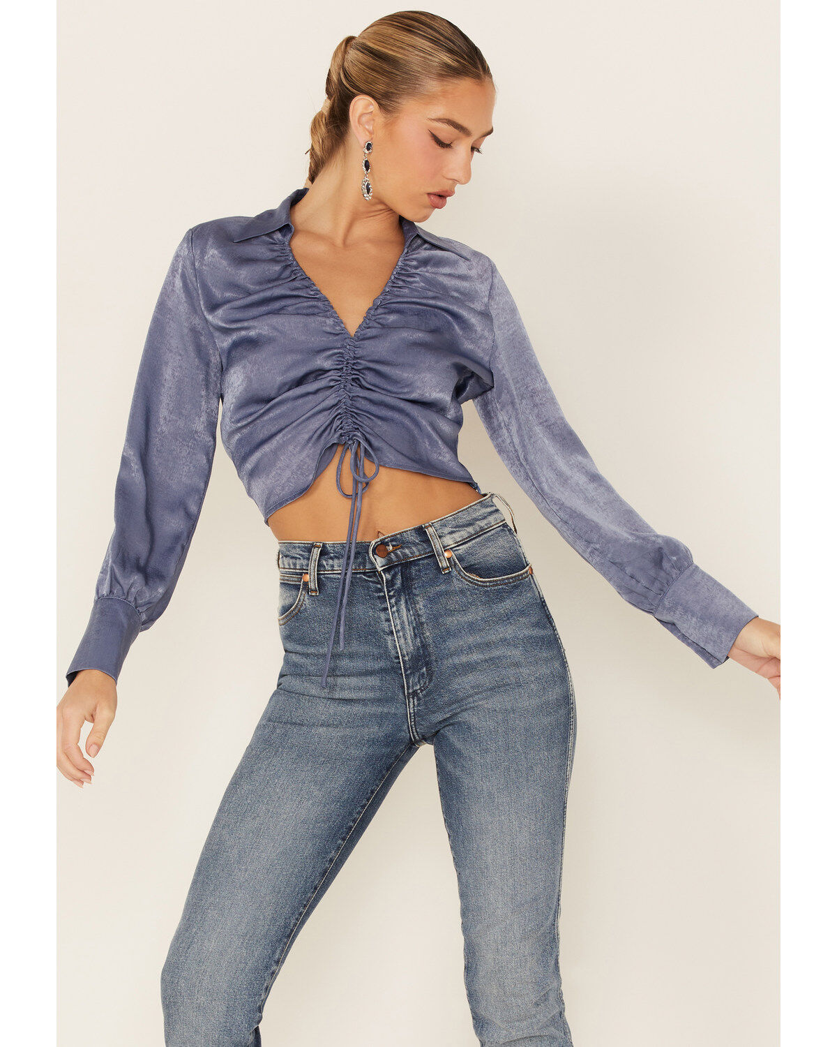 Lush Women's Satin Cinch Front Blouse