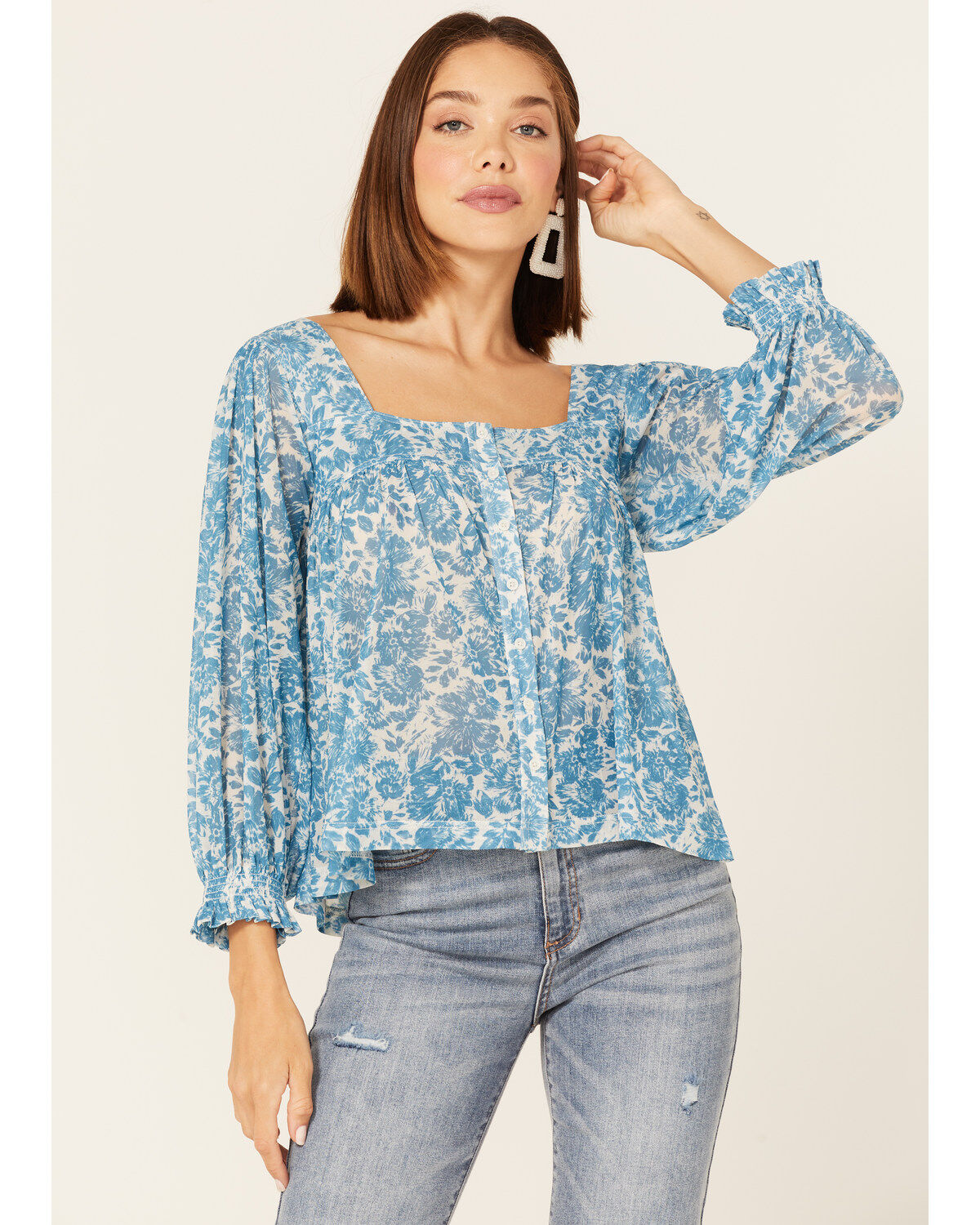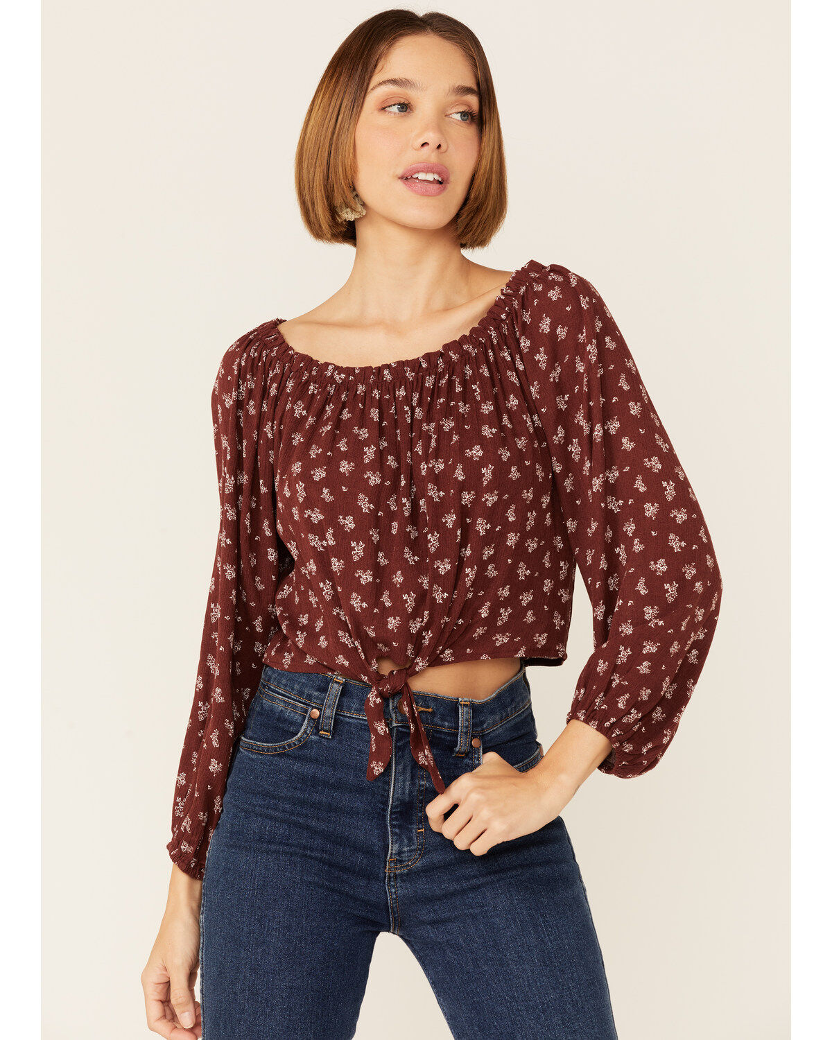 Wild Moss Women's Floral Print Long Sleeve Peasant Top