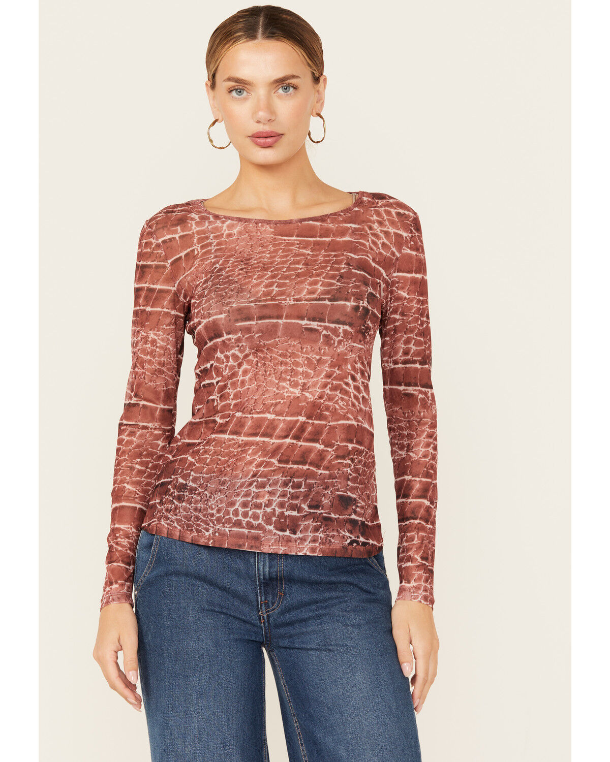 Vocal Women's Snake Print Long Sleeve Mesh Top