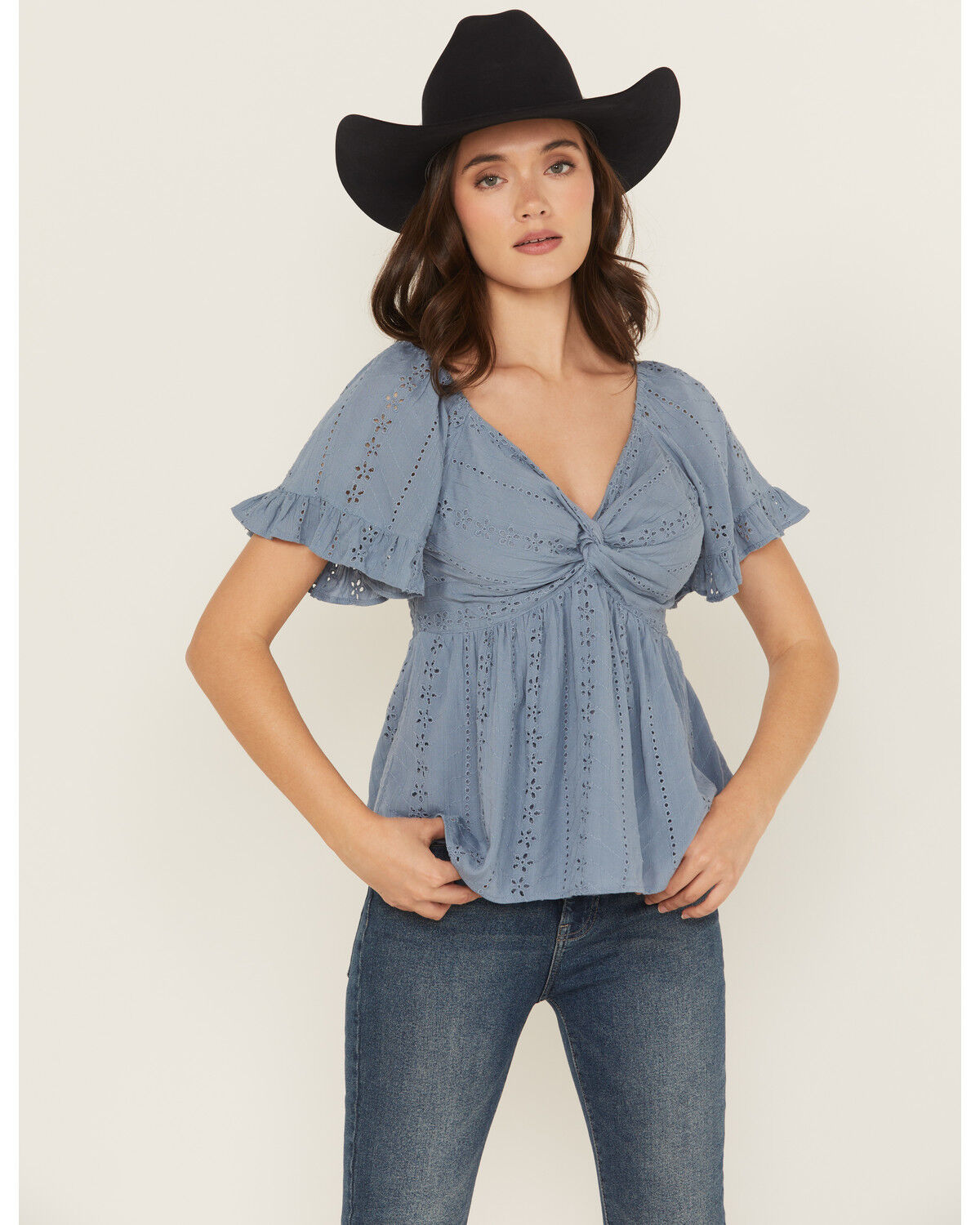 Angie Women's Eyelet Short Puff Sleeve Shirt
