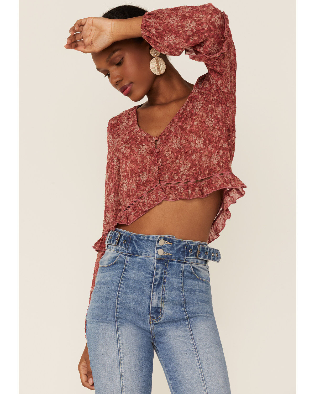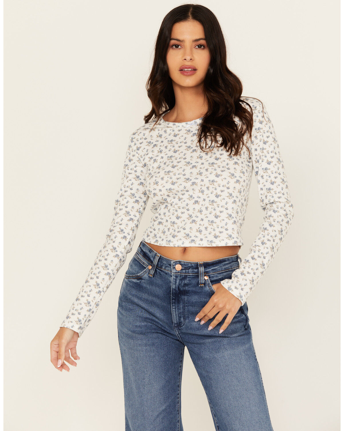 Originality Women's Floral Print Long Sleeve Cropped Tee