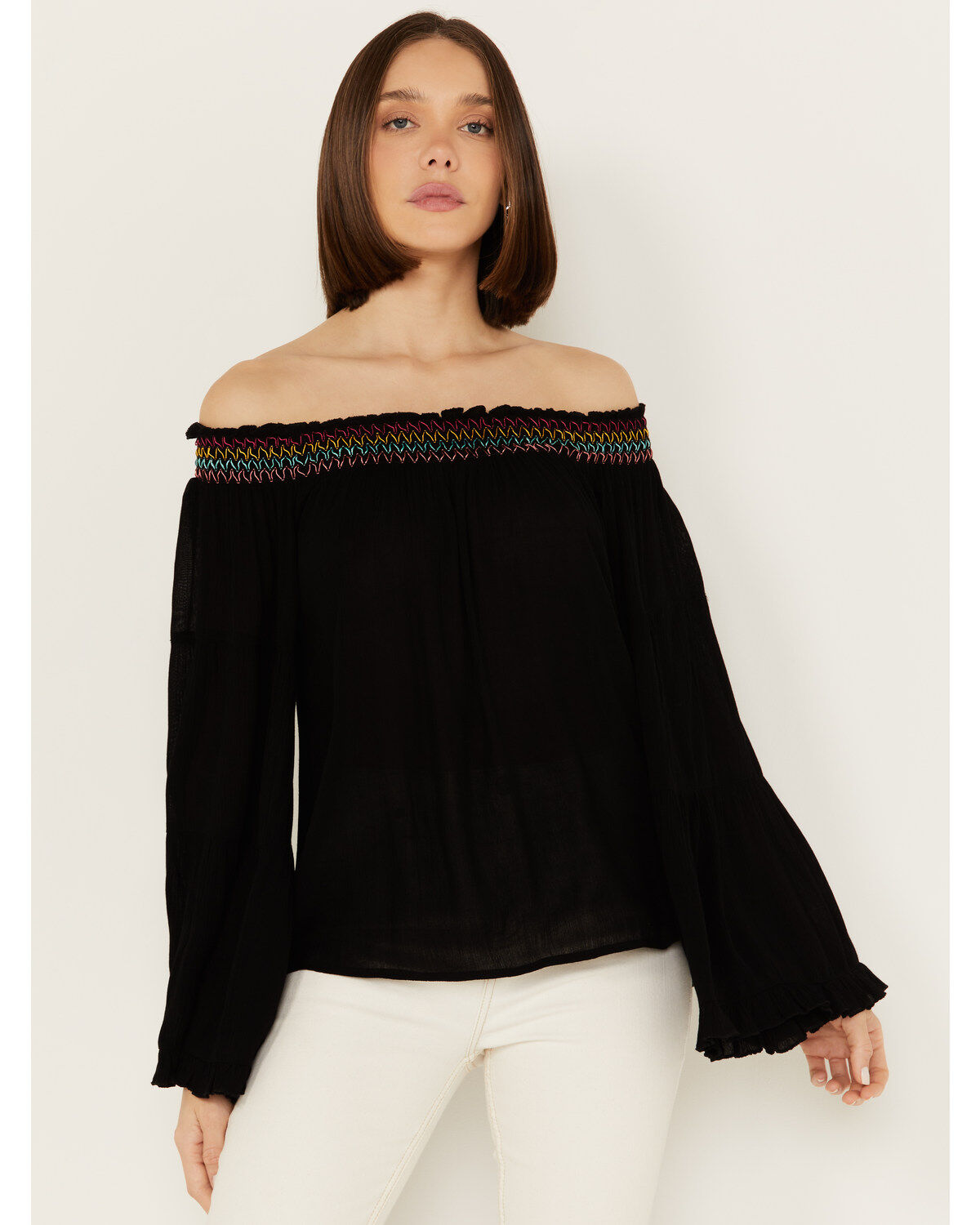Jolt Women's Lace Trim Long Sleeve Peasant Top