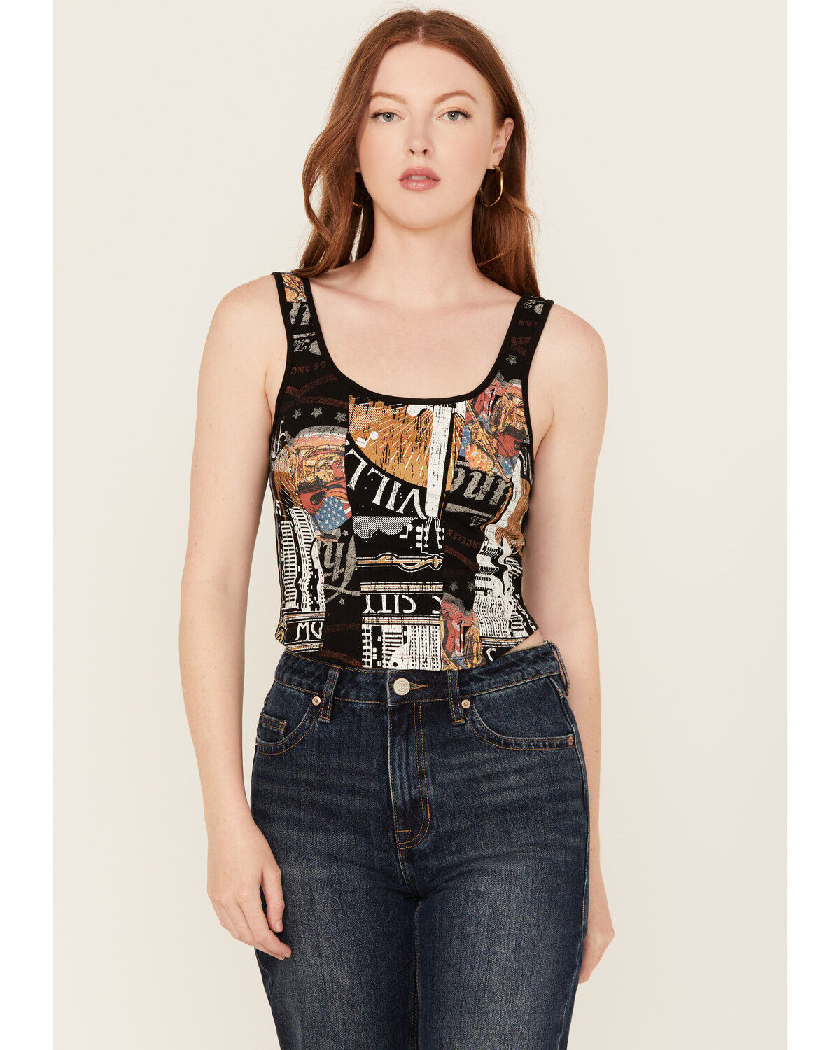 Originality Women's Guitar Print Graphic Cropped Tank Top
