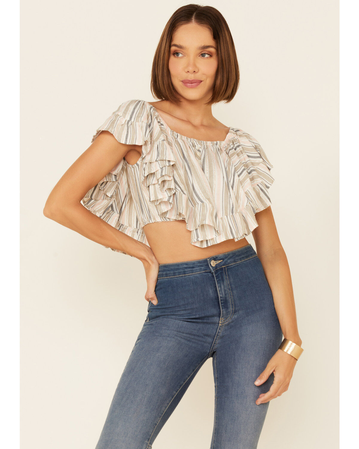 Angie Women's Stripe Butterfly Short Sleeve Crop Top