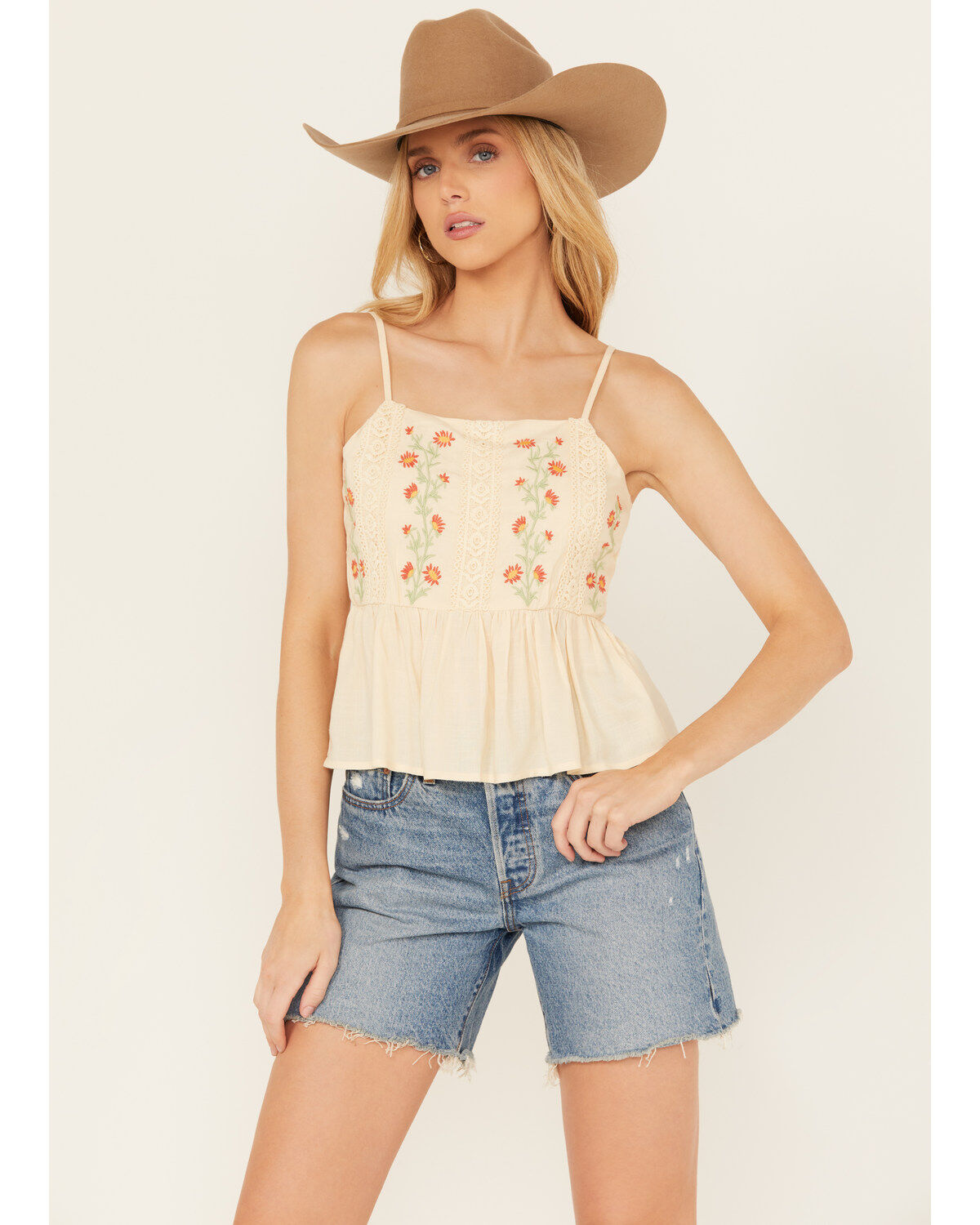 Rock & Roll Denim Women's Floral Flutter Sleeveless Top